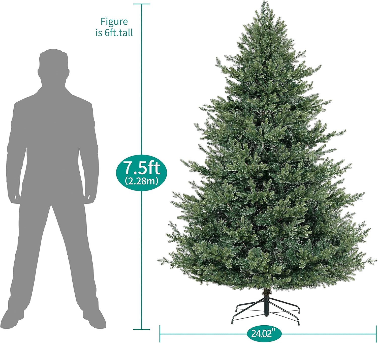 Naomi Home 7.5ft Traditional Christmas Tree with Lights Realistic Classic Christmas Tree Prelit with 4130 Branch Tips 600 Warm Lights and Metal Stand Aritificial