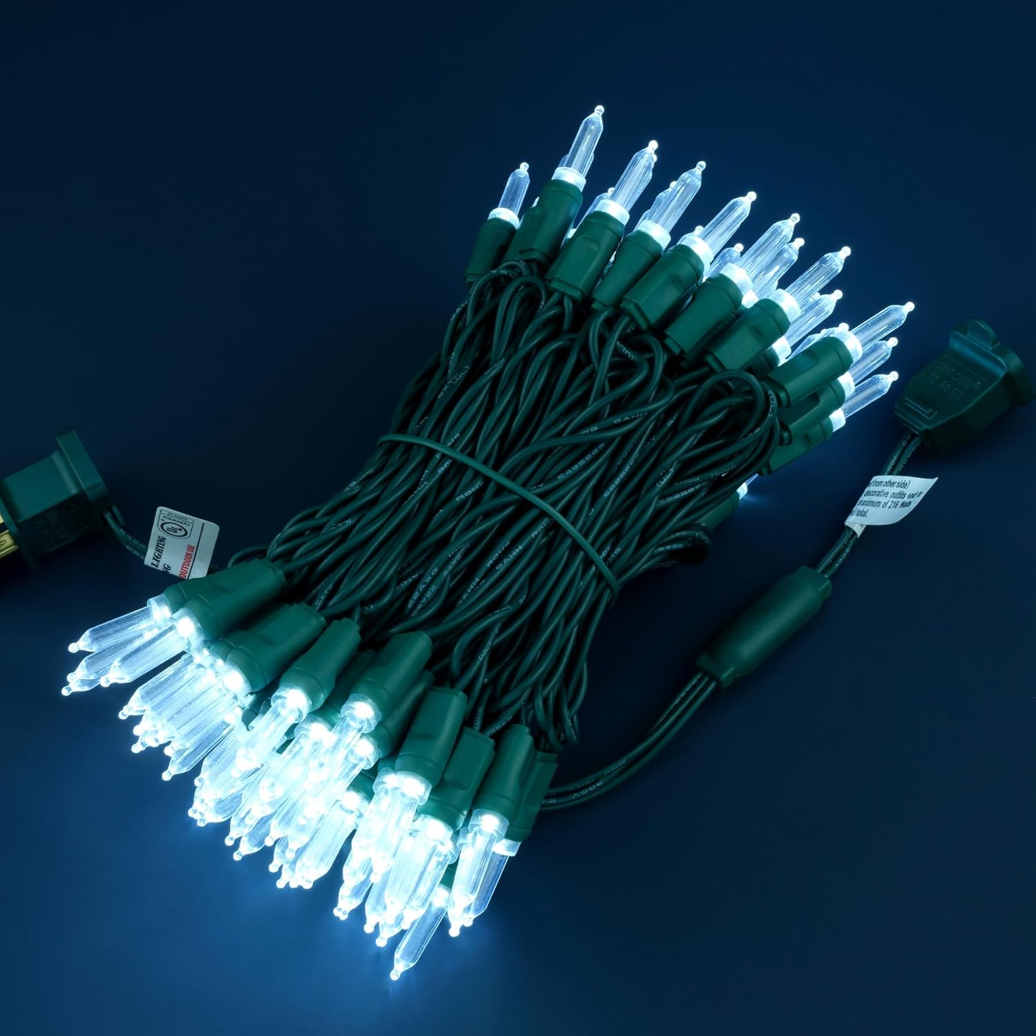 - SPECIFICATIONS β Each pack contains 1 strands of one-piece string lights, total length 33 feet with 100 count cool white mini lights. 22 AWG green cord, 4" lead, 4" spacing, 4" tail.