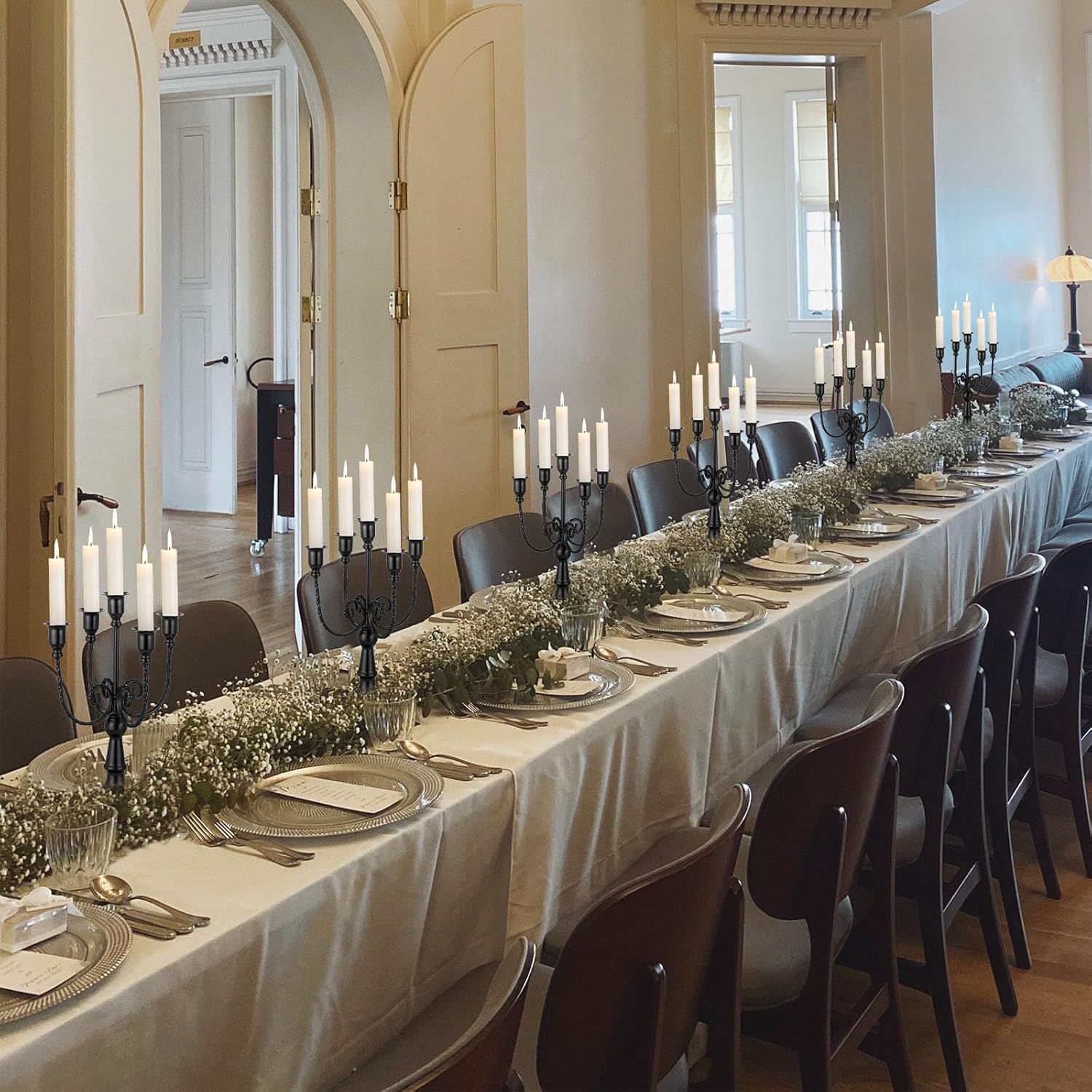 Sziqiqi Candelabra Candles Holder Centerpieces - Black Candlestick Holders Bulk for Halloween Vintage Tabletop Candelabras for Party Events Holiday, 6 Pieces