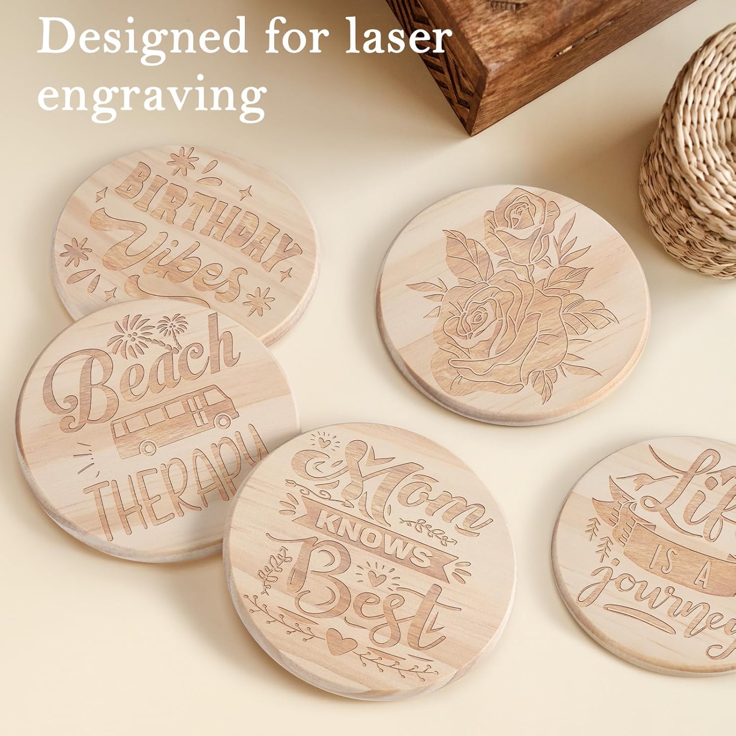 - DESIGNED FOR LASER ENGRAVING: Unleash your creativity and craft personalized coasters! With laser engraving technology, you can effortlessly etch your own designs, text, or logos onto pine coasters. The simple process allows you to achieve personalized customization in no time, creating unique and meaningful coasters.