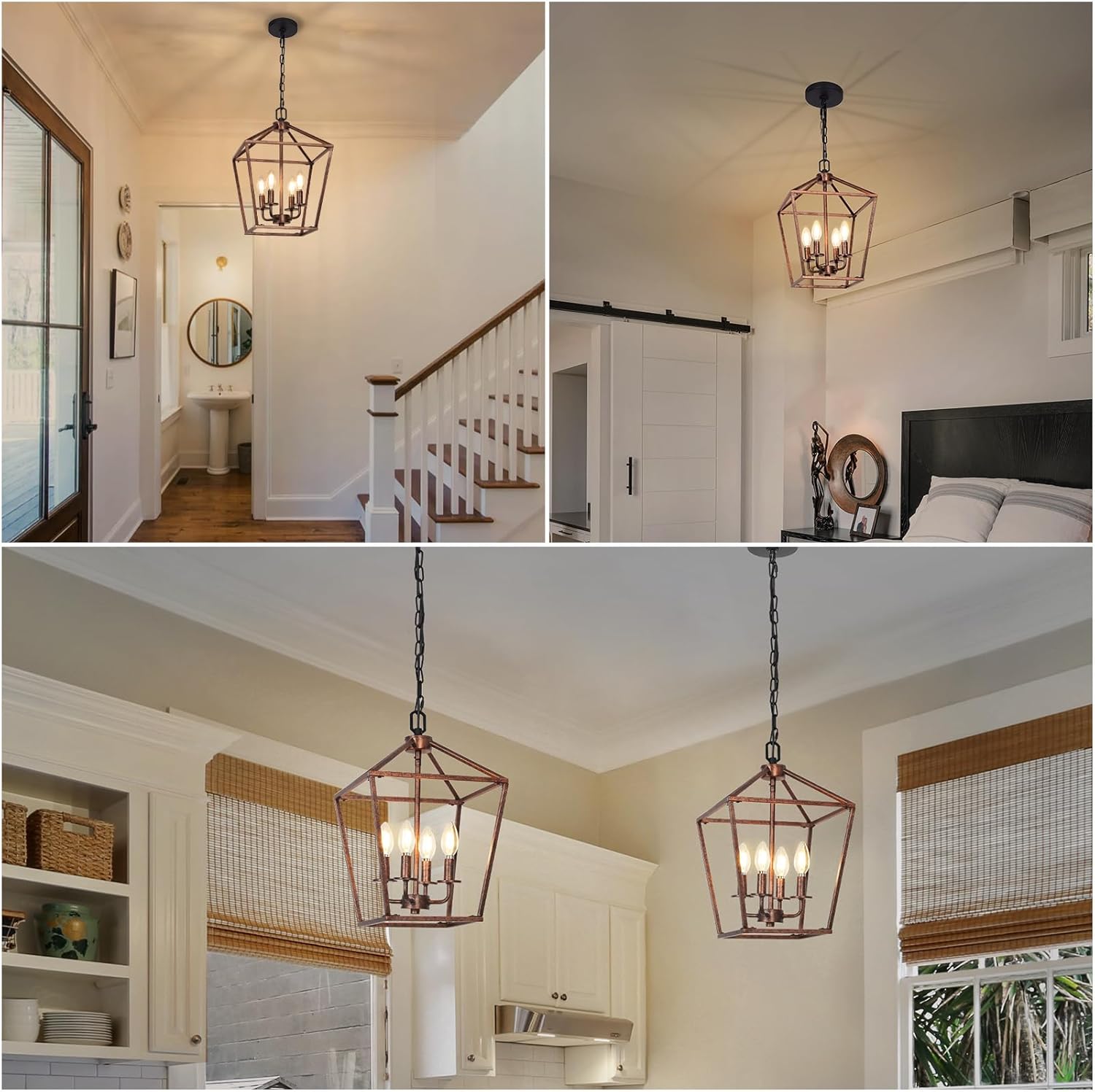 - Vinatge and Stylish Appearance: Featured with antique bronze center candlestick and geometric outward appearance, the geometric lantern chandelier is a wonderful addition to add industrial touch to your home décor. Artistic and eye-catching, it can perfectly blend in any place such as bedroom, living room, bathroom, dining room, hallway or kitchen island (indoor use only).