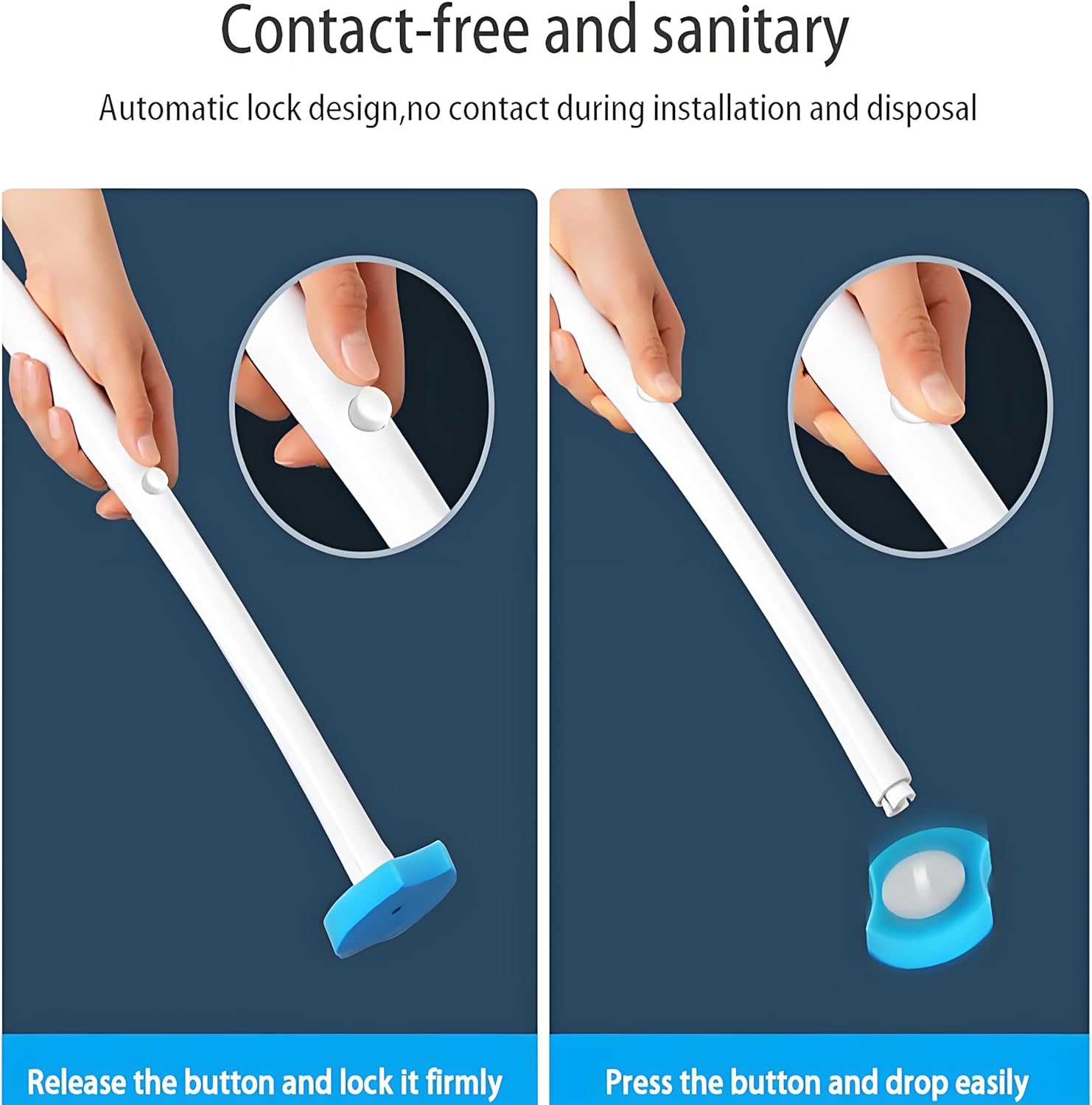 - ✨【Zero-Touch Cleaning Technology】 Patented one-button release drops used heads into the toilet—no hand contact required. 17-inch extended handle reaches under rims and tight corners effortlessly.