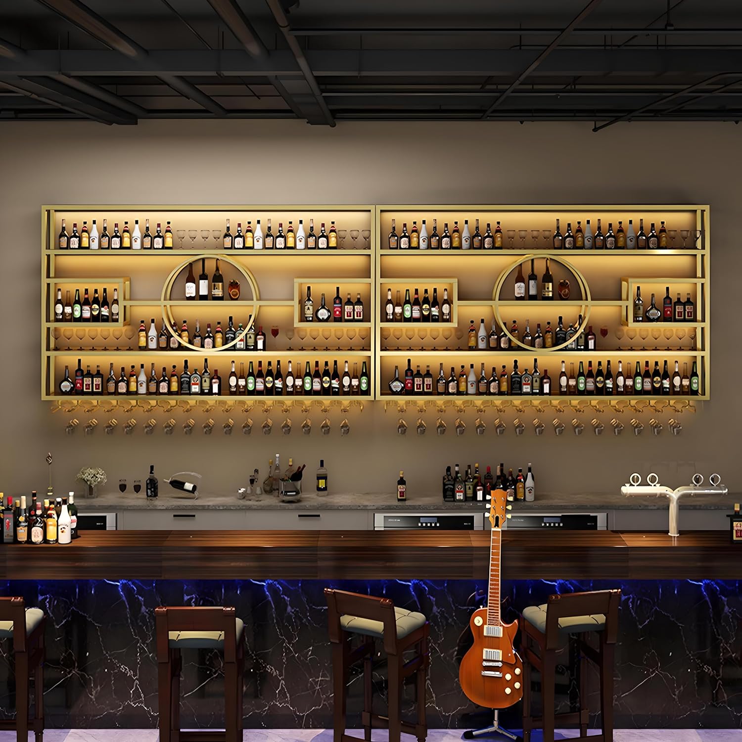 47.2in Wall Mounted Wine Rack, Modern Metal Wine Bottle and Glass Holder, Iron Display Stand Decorative Wine Rack, for Bar Living Room Dining Room Background (Gold, 47.2 * 8 * 51INCHES)