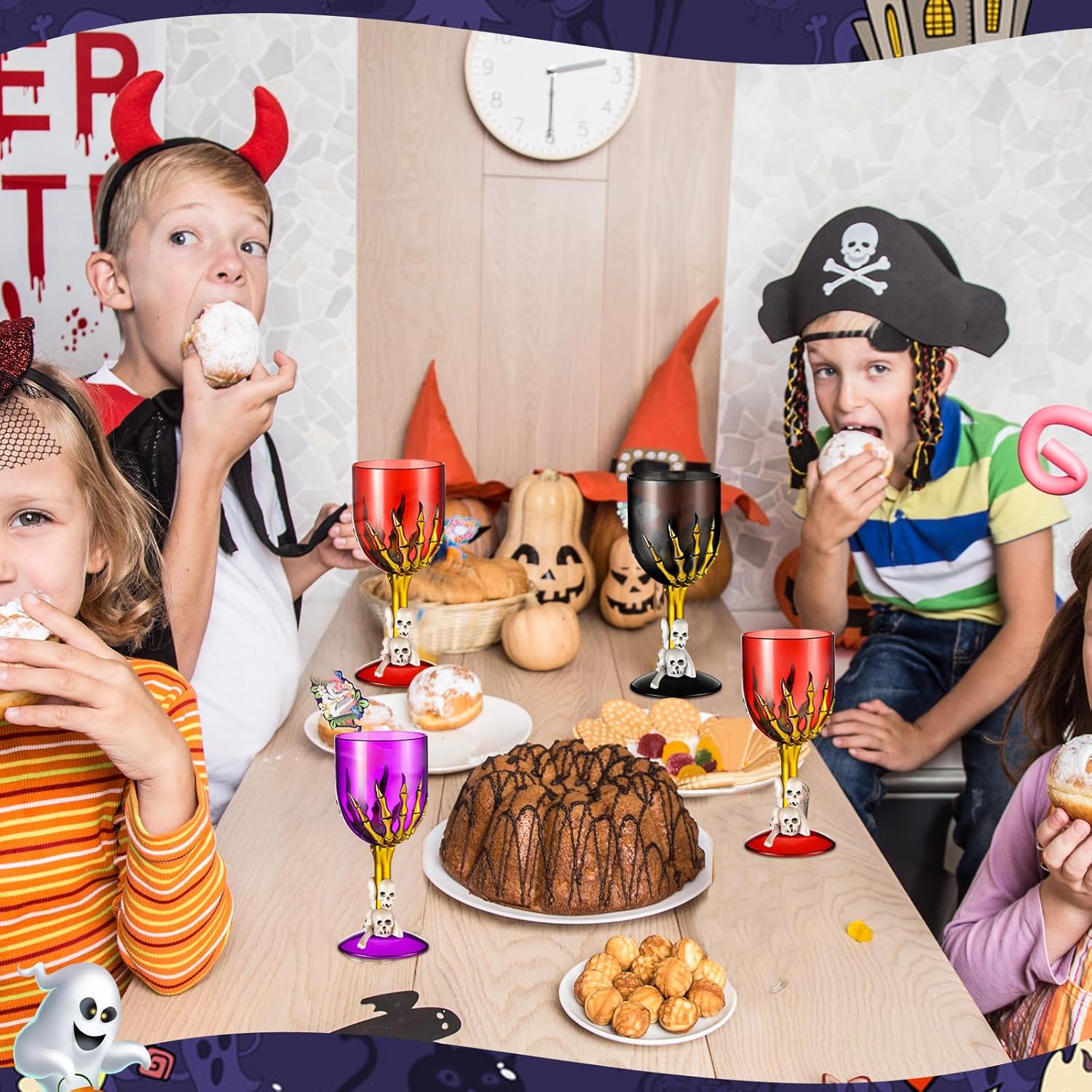 - Creepy and Creative Designs: stand out with our scary and spooky design! The Halloween goblet feature a creative skull hand and skeleton head design that adds a touch of creativity and creepiness to your party; The appealing, attractive goblet will surely make your Halloween more funny and unforgettable