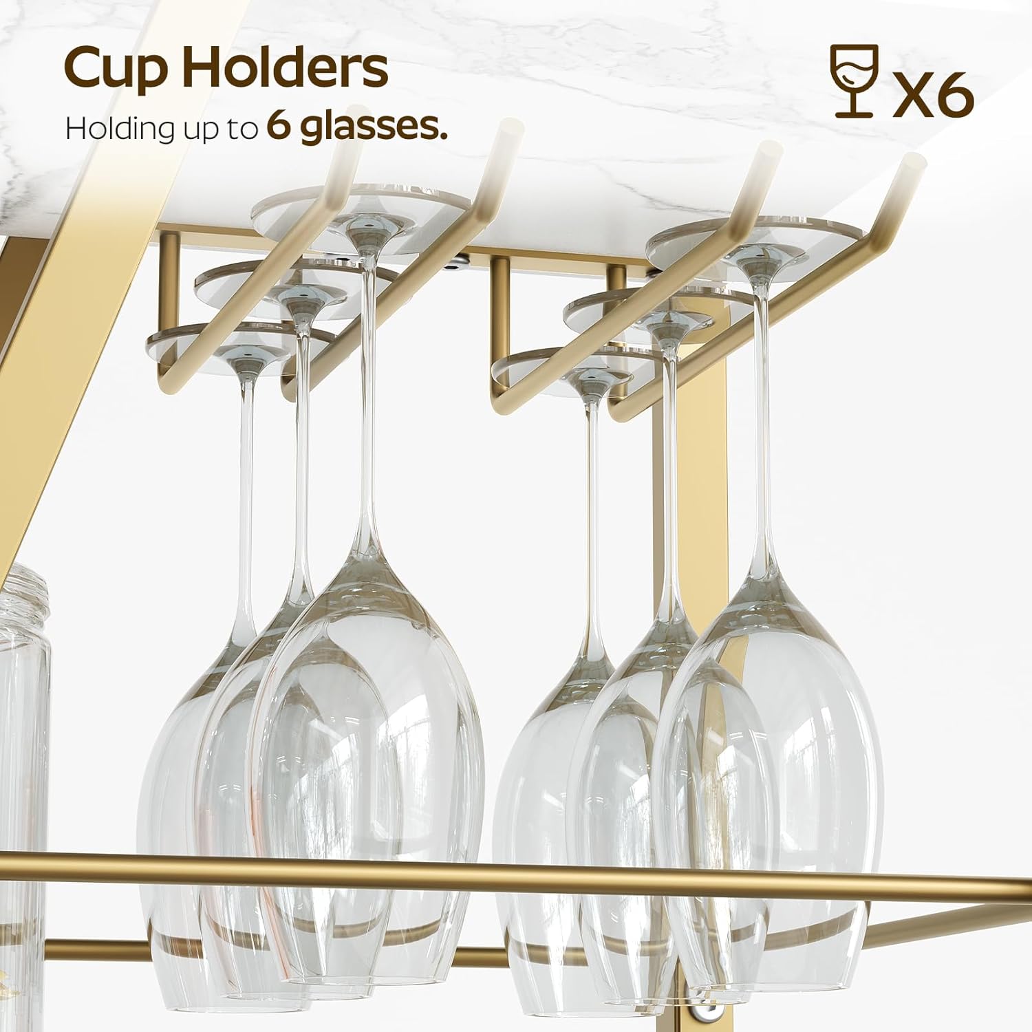 - Cup Holders Included: This bar cart has 2 quality metal cup holders for storing 6 goblets, ensuring stability while the cart is in motion. Whether you're preparing drinks or moving the cart during a gathering, you can use it with confidence