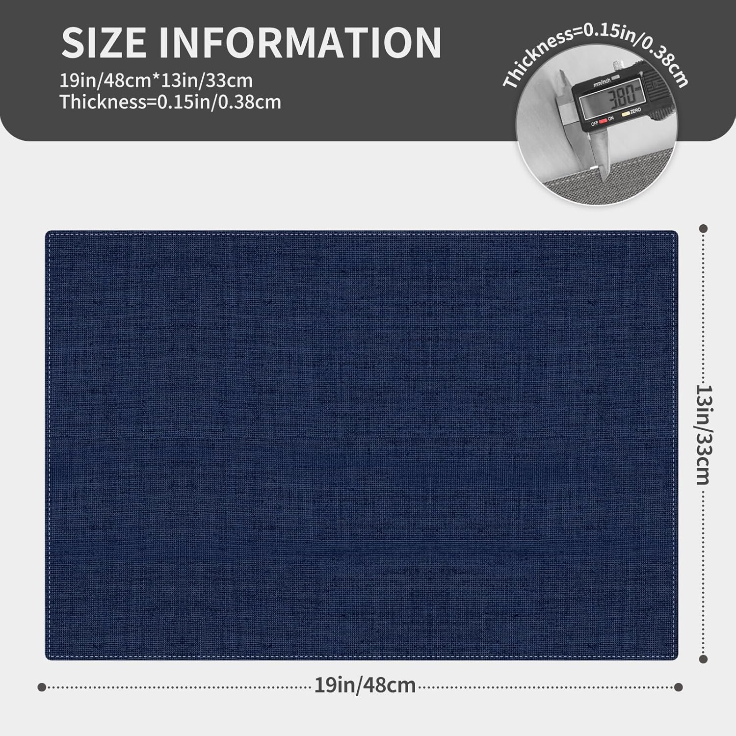Cloth Placemats, Set of 4 Heat-Resistant Cotton Linen Blend Double Layered Machine Washable Place Mats, Wrinkle Free Thick Fabric Dining Table Mats for Indoors & Outdoors (Navy Blue, 4)