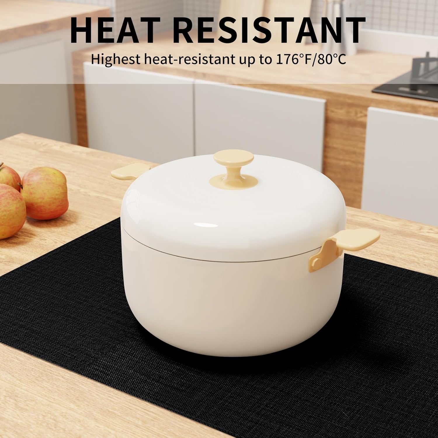 - DURABLE & THICK: Each placemat has double layers and both sides are usable. It's thick enough to protect the table form hot plates, stain, scratches and some water droplets spilled from tableware. NOT waterproof.