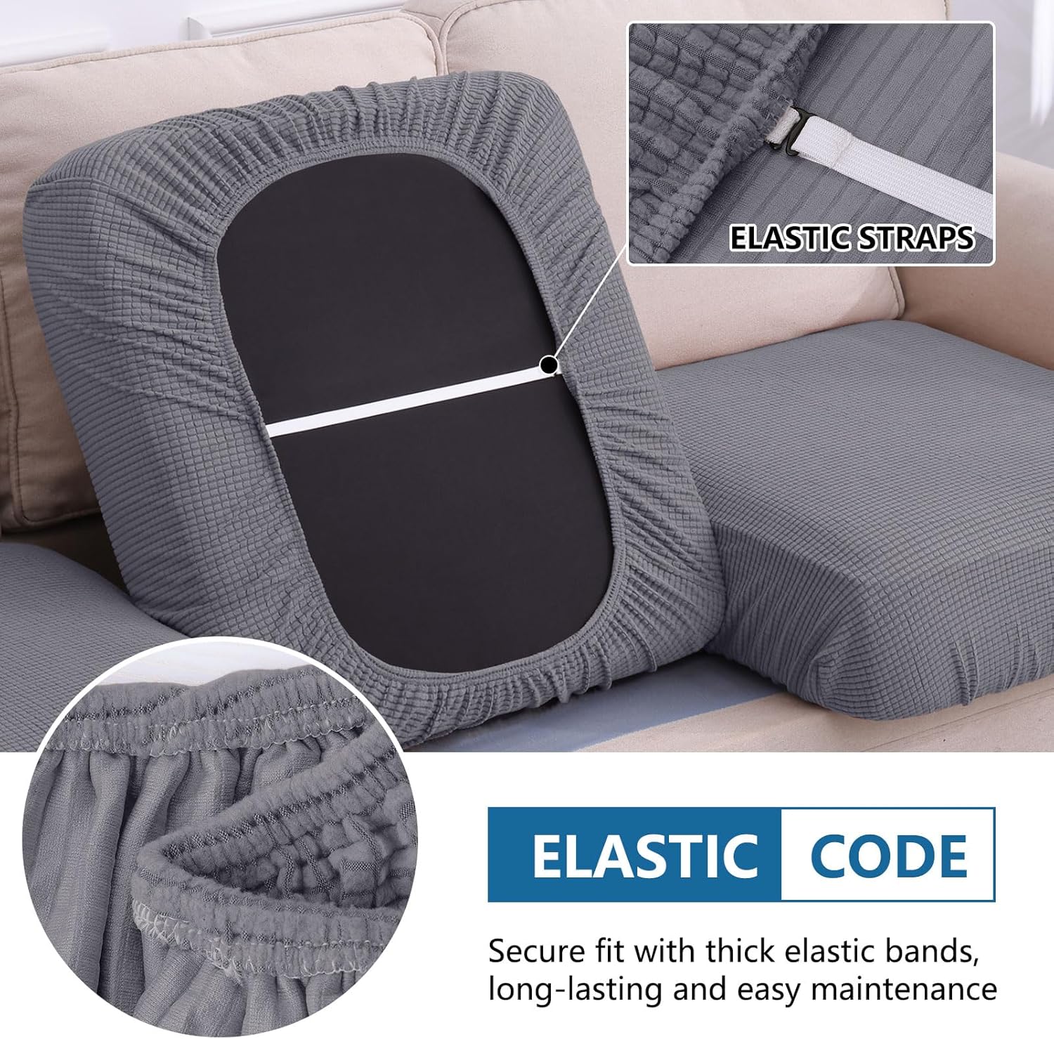 hyha Waterproof Couch Cushion Covers, Washable Sofa Cushion Slipcovers, Thick Stretch Jacquard Fabric, Couch Sofa Covers for Pets with Elastic Bottom (3 Pieces, Middle Grey)