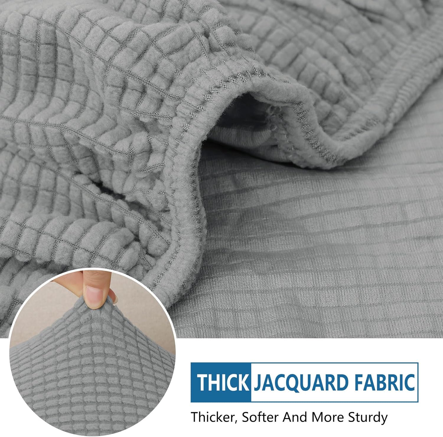 hyha Waterproof Couch Cushion Covers for Pets, Non Slip Sofa Seat Cover for Dogs Washable, Soft Thick Stretch Jacquard Fabric, Sofa Slipcovers with Elastic Bottom (3 Pieces, Light Grey)