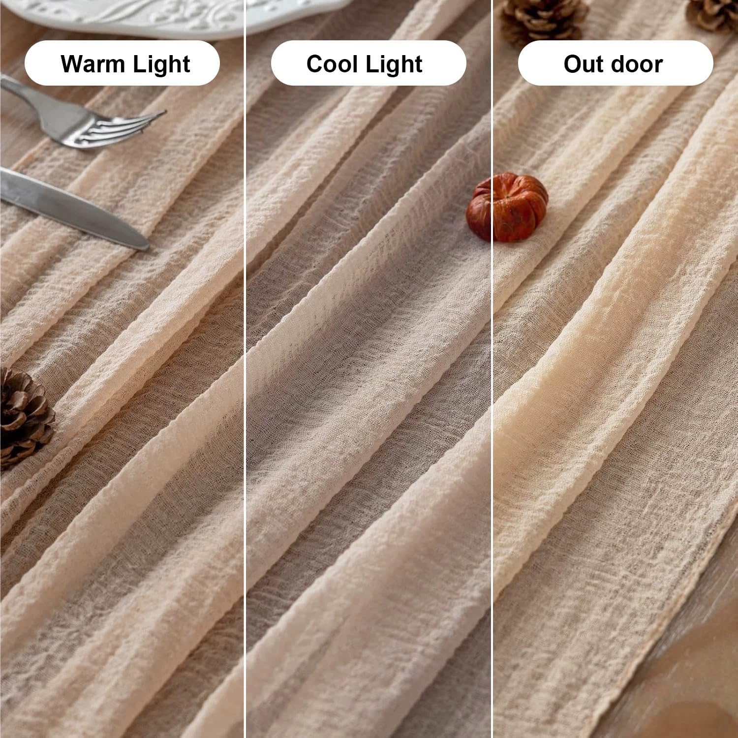 Deep Beige Cheesecloth Table Runner Rustic Boho Gauze 120 Inch 10 FT Cheese Cloth for Wedding Baby Shower Bridal Shower Birthday Engagement Party Long Sheer Home Decorations