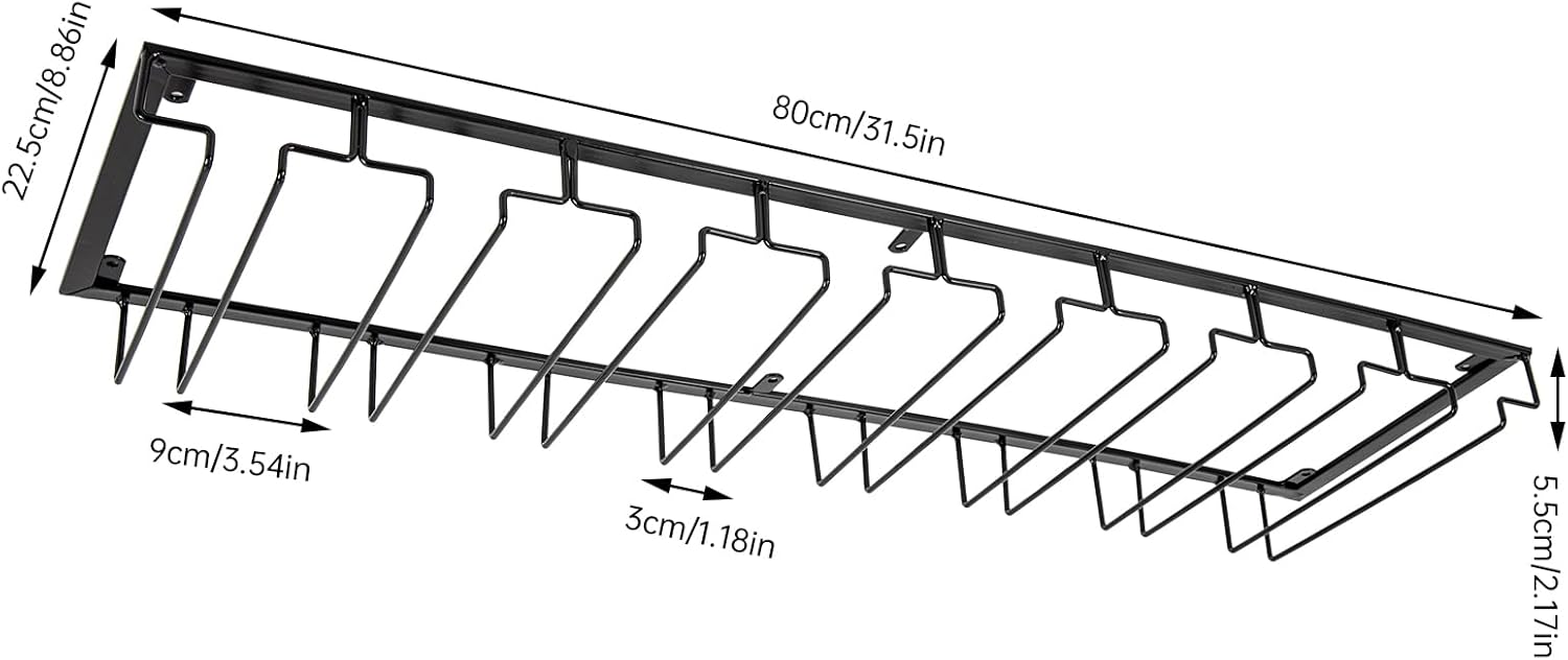 - 【WIidely Used】This glasses storage hanger is suitable for holding wine glasses from 1.18” to 3.54”, such as Bordeaux wine glasses, white wine glasses, cocktail glasses, Burgundy glasses, champagne glasses and so on. It's a good helper for restaurant, bar, kitchen, dining table and other occasions.