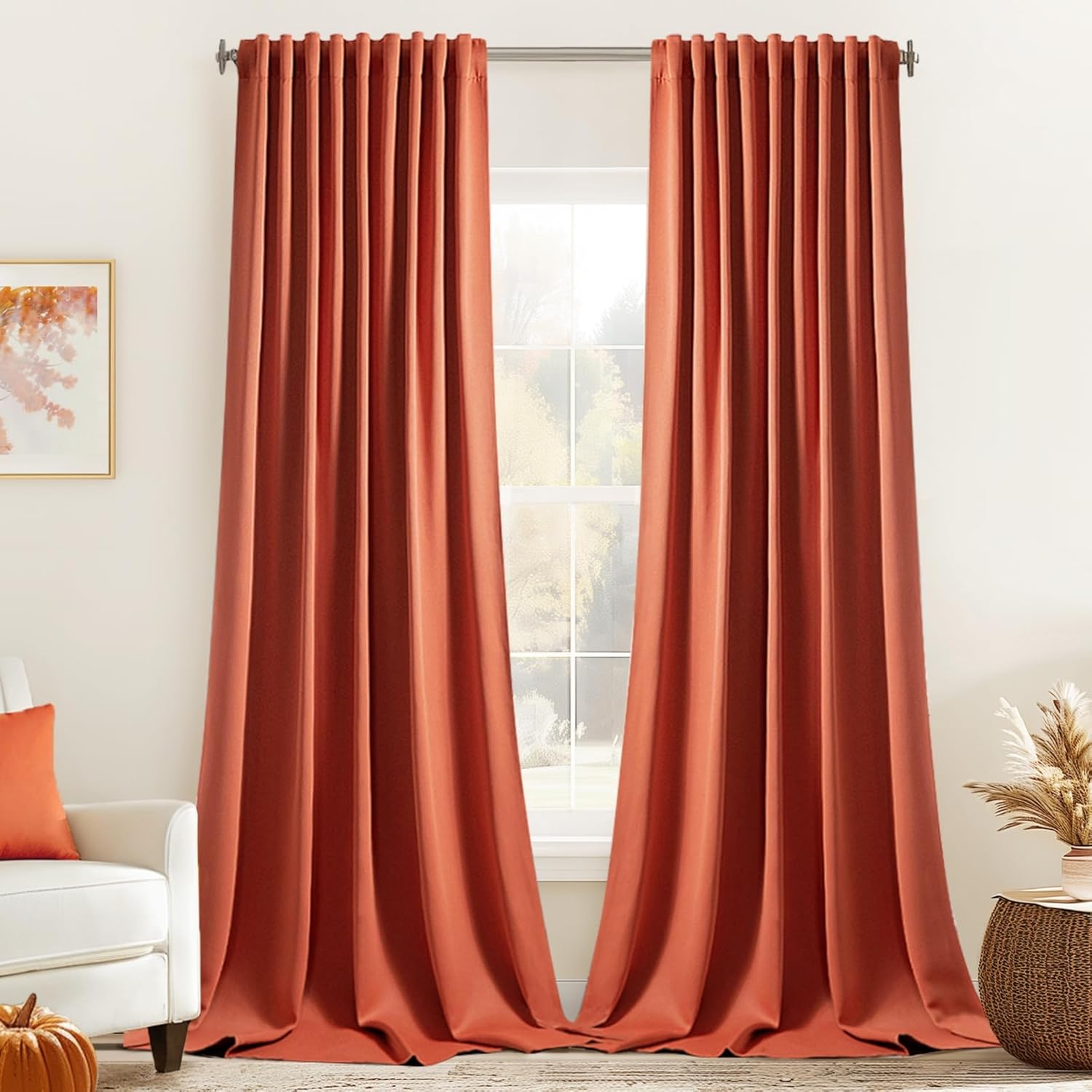 MIULEE Back Tab Burnt Orange Blackout Curtains 102 Inch Long 2 Panels Set for Bedroom, Fall Terracotta Rod Pocket/Pinch Pleated Thermal Insulated Room Darkening Light Blocking Floor to Ceiling Drapes