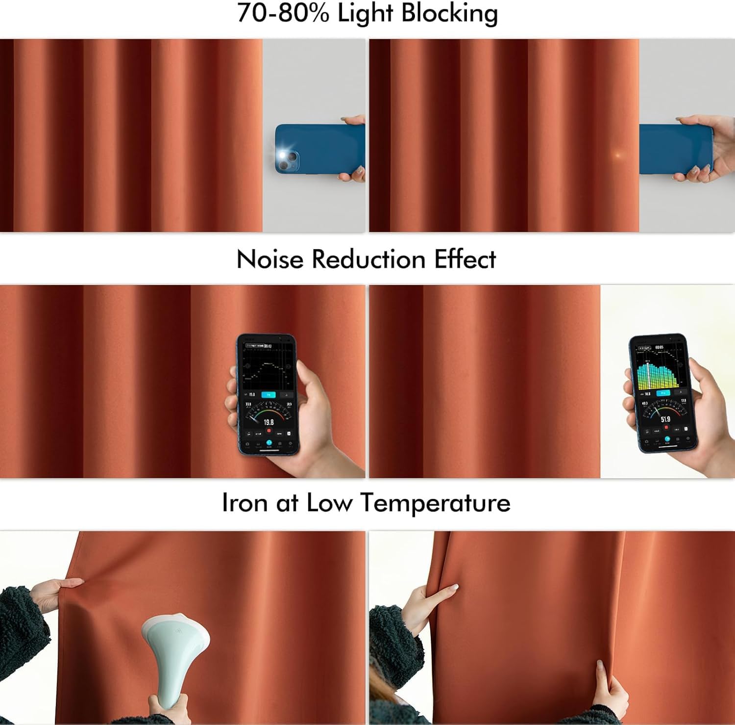 MIULEE Back Tab Burnt Orange Blackout Curtains 84 Inch Length 2 Panels Set for Living Room Bedroom, Fall Terracotta Rod Pocket/Pinch Pleated Thermal Insulated Room Darkening Light Blocking Curtains