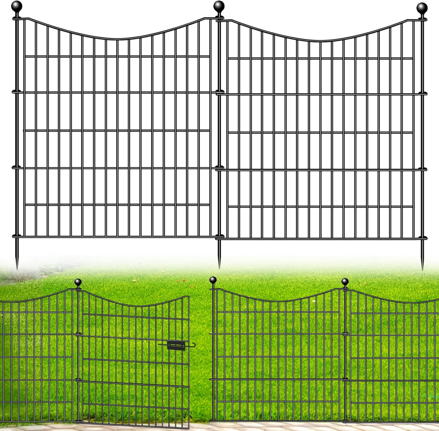 10 Panels Decorative Garden Fence with Gate, 32 in(H) X 23.6 ft(L) No Dig Dog Fence Animal Barrier Outdoor for Yard, Rustproof Metal Garden Edging and Borders, Temporary Fencing Stakes