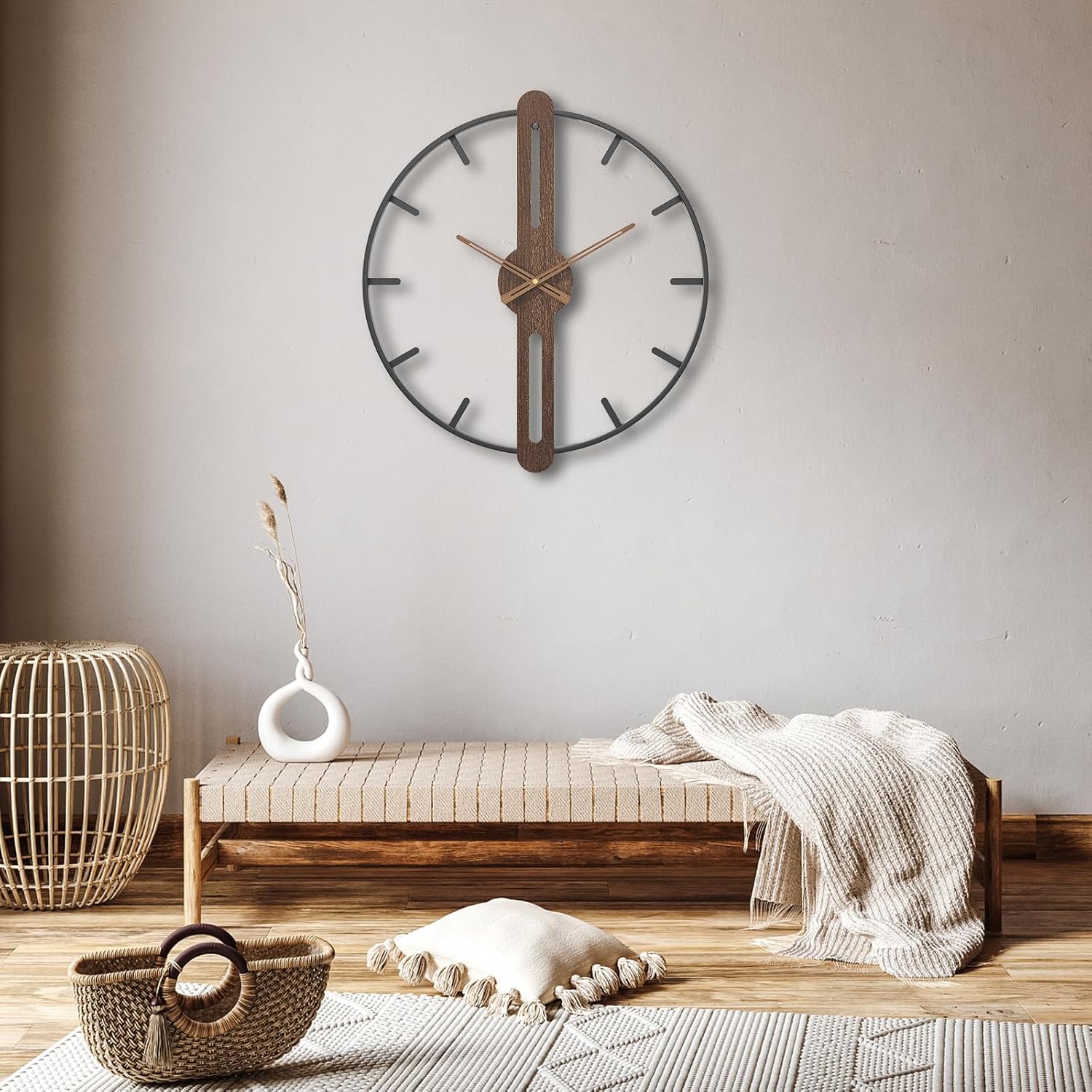 - Refined Modern Minimalism: This handcrafted wall clock boasts a natural walnut dial with nuture walnut clock hands, encased in a solid metal frame. Its blend of contemporary and vintage styles transforms it from a mere timepiece into an elegant work of art, enhancing your home decor