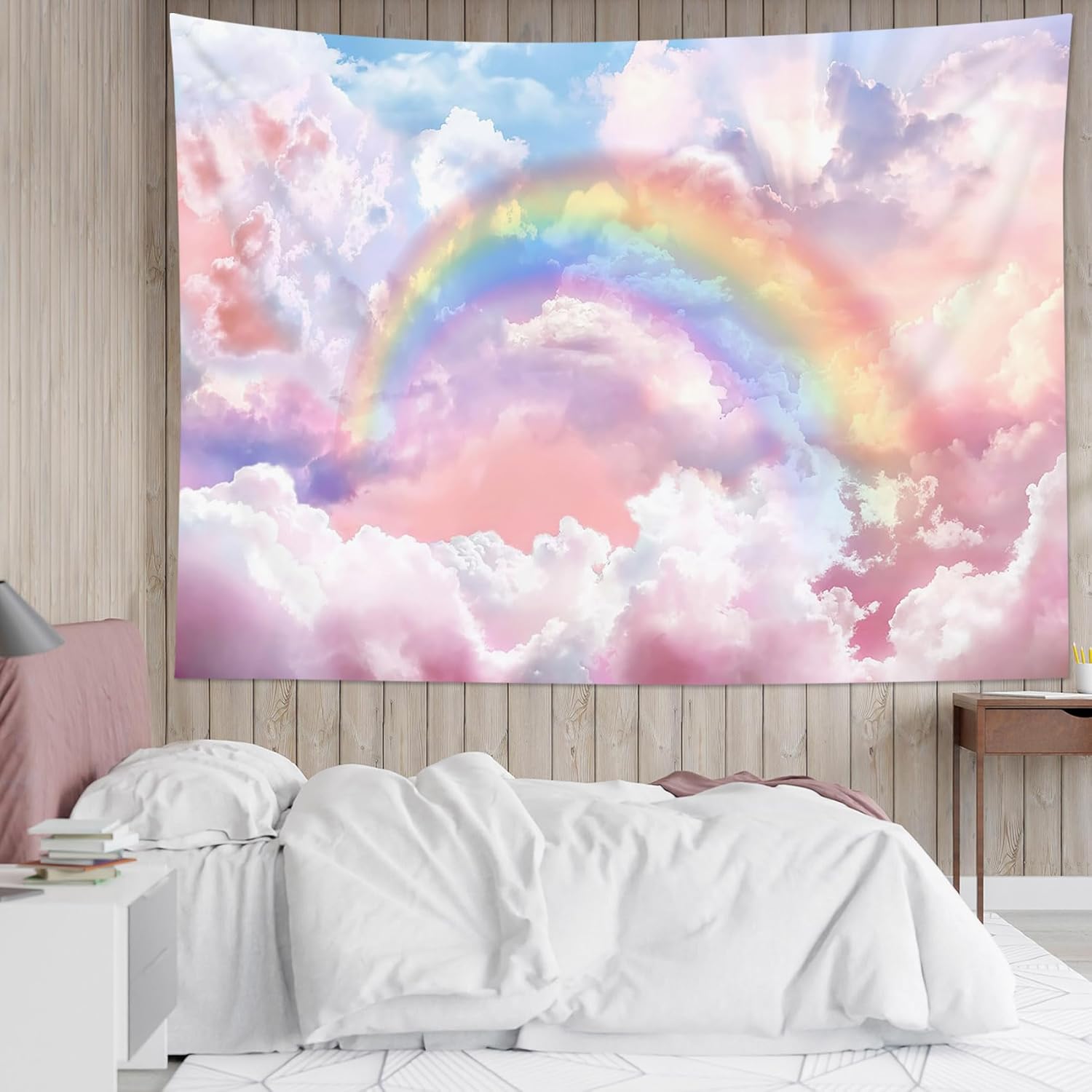 - DESIGN: This Pink dreamy clouds tapestry adopt HD digital printing, Don’t worry about fading, more clear, vivid colors, vibrant colorful design will light up your room, give you a happy mood!