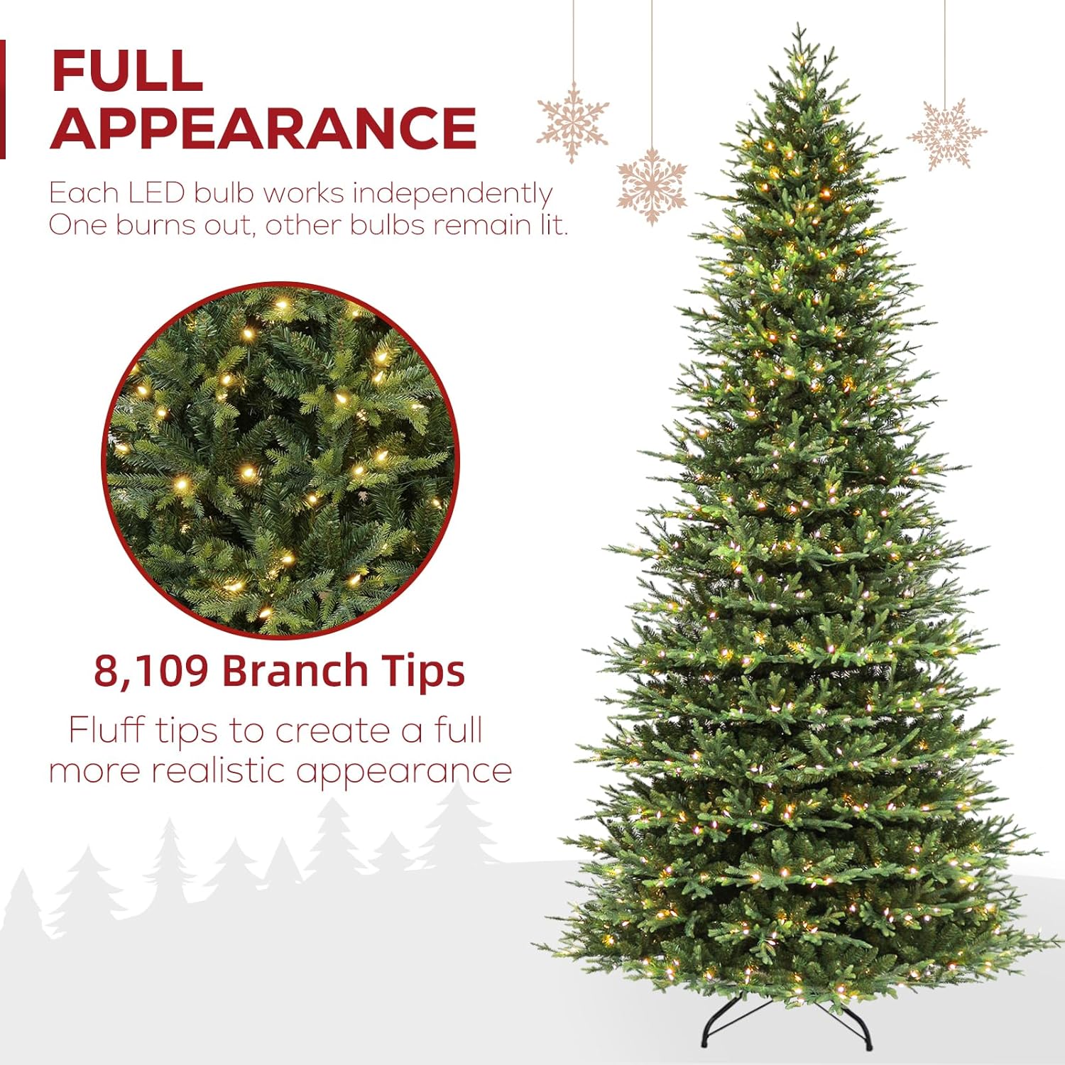 - NATURAL & LUSH APPEARANCE: Standing at 12 feet tall with a 72 inch diameter base, this Christmas tree boasts 8109 PE&PVC branch tips for a full and lifelike look. Easily fluff and shape the branches to create a splendid and natural display, perfect for decorating with your favorite holiday ornaments.