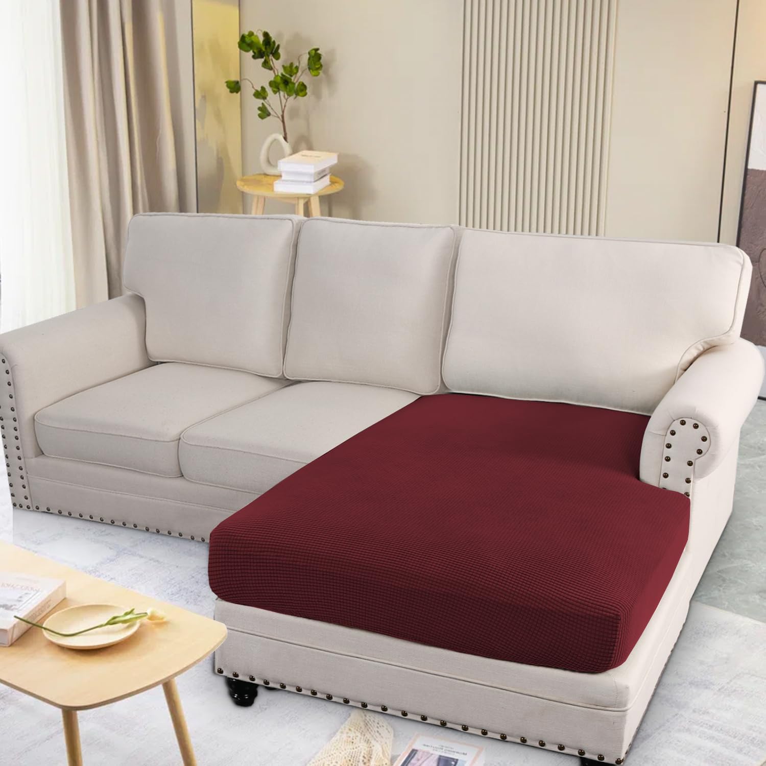 H.VERSAILTEX Super Stretch Individual Chaise Cover Sectional Couch Covers for L Shaped Sofa Both Left/Right Featuring Thick Jacquard Textured Twill Fabric (1 Piece Chaise Cover, Burgundy Red)