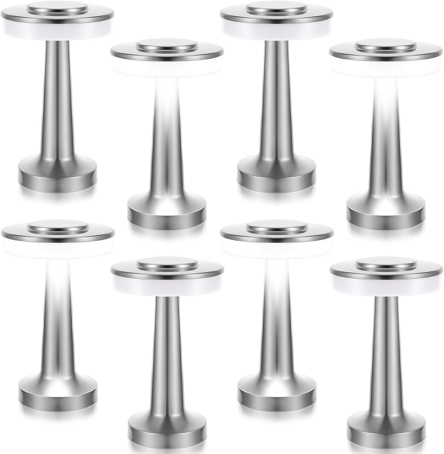 - Large Package: each package includes 8 silver lamps; With such a generous number, you can easily brighten up multiple spaces in your home or office, and each is equipped with 1800 MAH rechargeable battery, lasting up to 15 hours at the minimum brightness