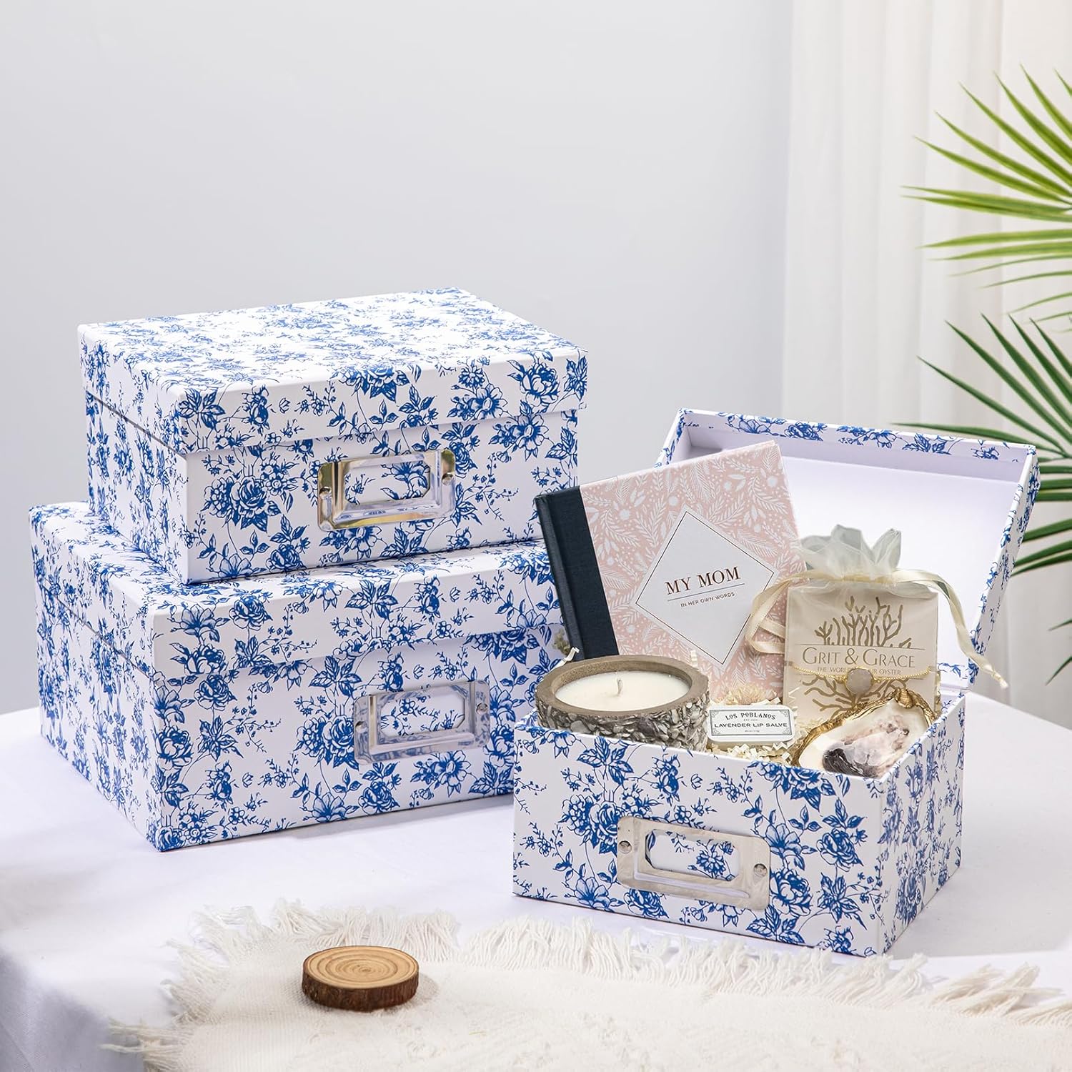 Briful Blue and white Porcelain Storage Boxes, Photos Storage Boxes with Lids 4 in 1 Set Water-proof Gift Boxes Sets Decorative Multiple Size Storage Bins for Clothes/Shoes/Office/Cosmetic/Books