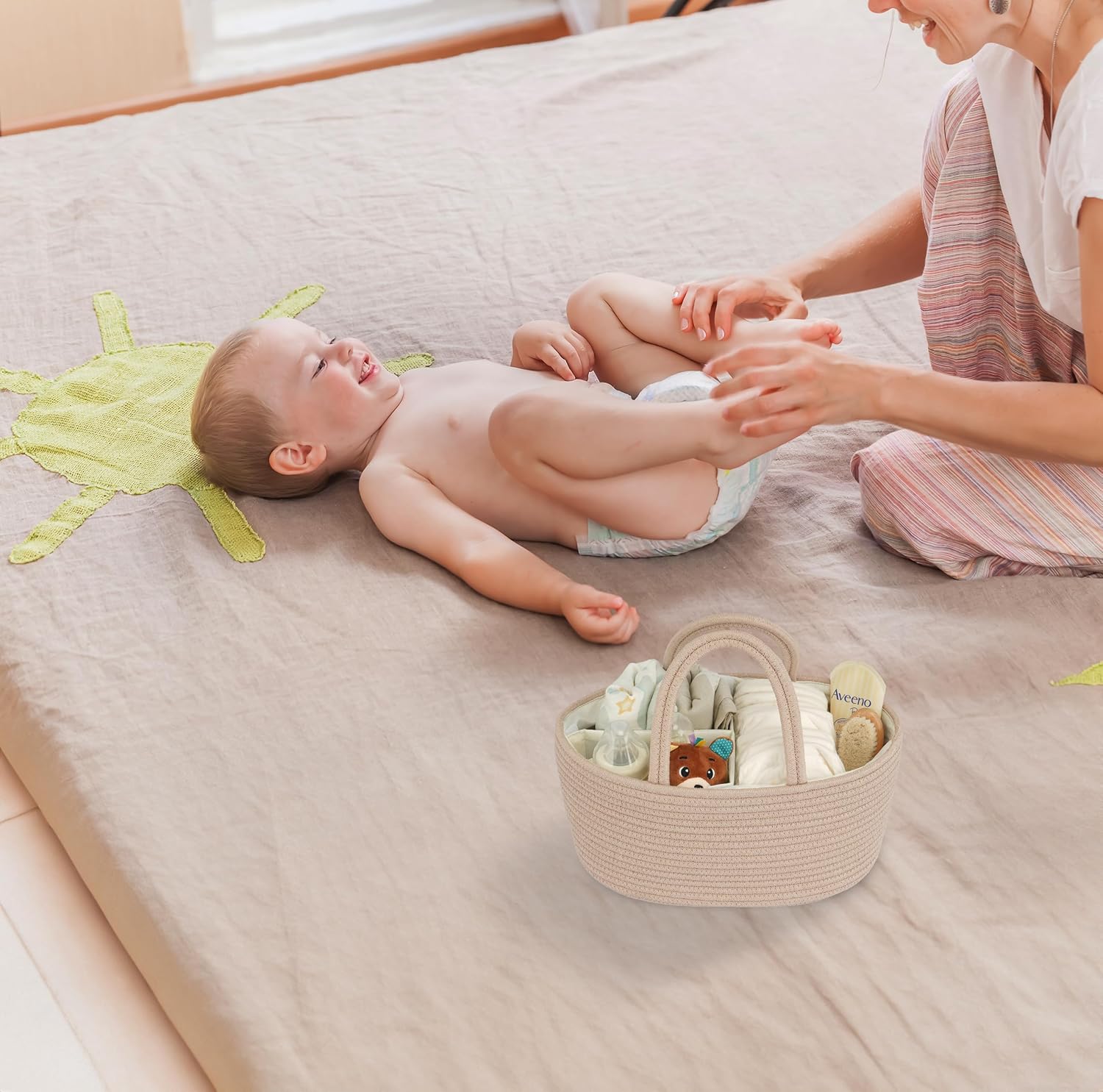 - Stylish baby caddy: Our diaper caddy organizer is 14β x 9β x 7β, The Baby diaper caddy organizer simplifies your diaper-changing routine by providing a dedicated space for all baby essentials. This caddy organizer with multiple compartments, easily store diapers, wipes, creams, toys, spare clothes, and more baby stuff. Streamline changing time, ensuring everything is within arm's reach.