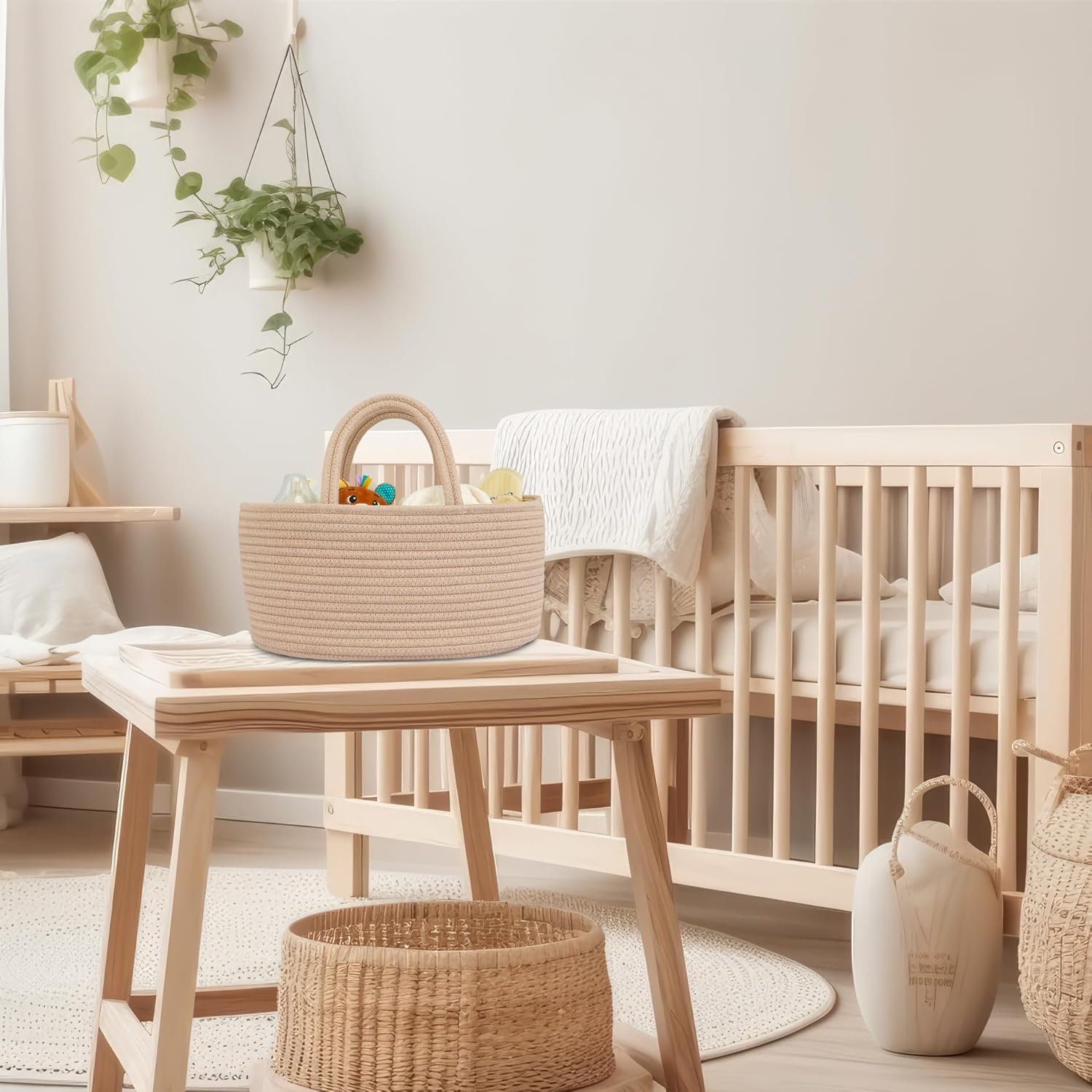 - Stylish and Practical-baby nursery bin or nursery basket: This baby caddy or diaper organizer is not limited to diaper duty. It seamlessly transitions from the nursery to the car, living room, or bathroom. Use it as a breast pump caddy organizer or a stylish baby car organizer. Its adaptability makes it an indispensable item for new parents.