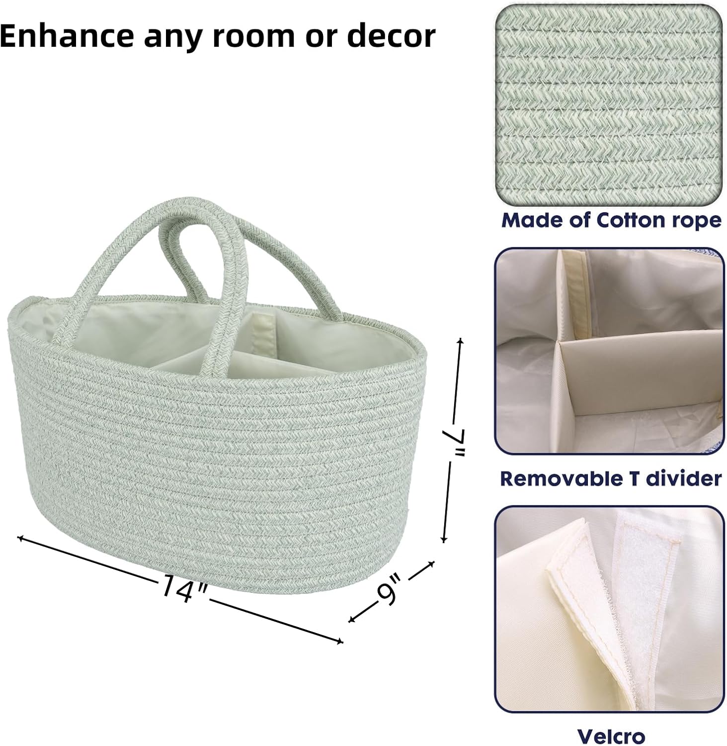 - Stylish baby caddy: Our diaper caddy organizer is 14β x 9β x 7β, The Baby diaper caddy organizer simplifies your diaper-changing routine by providing a dedicated space for all baby essentials. This caddy organizer with multiple compartments, easily store diapers, wipes, creams, toys, spare clothes, and more baby stuff. Streamline changing time, ensuring everything is within arm's reach.