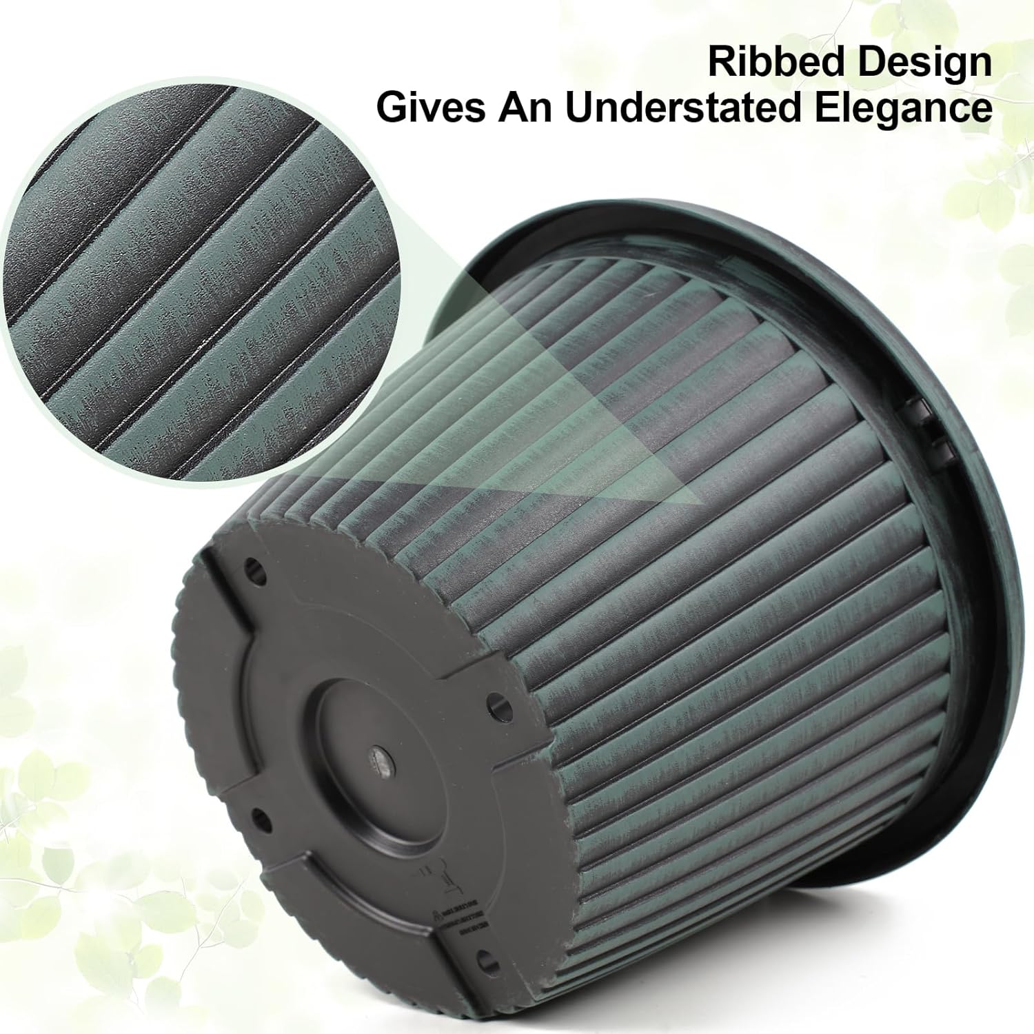 - 【MODERN STYLE PLANTERS】 Indoor planters with saucers provide a unique,nice style in ribbed design which gives an understated elegance that will enhance the beauty of your plant. These 12 inch plant pots are available in red-brown &blue-green & gold finished with a black antique stain. Plastic flower pots would be a beautiful addition to anyone’s deck or sunroom or house!