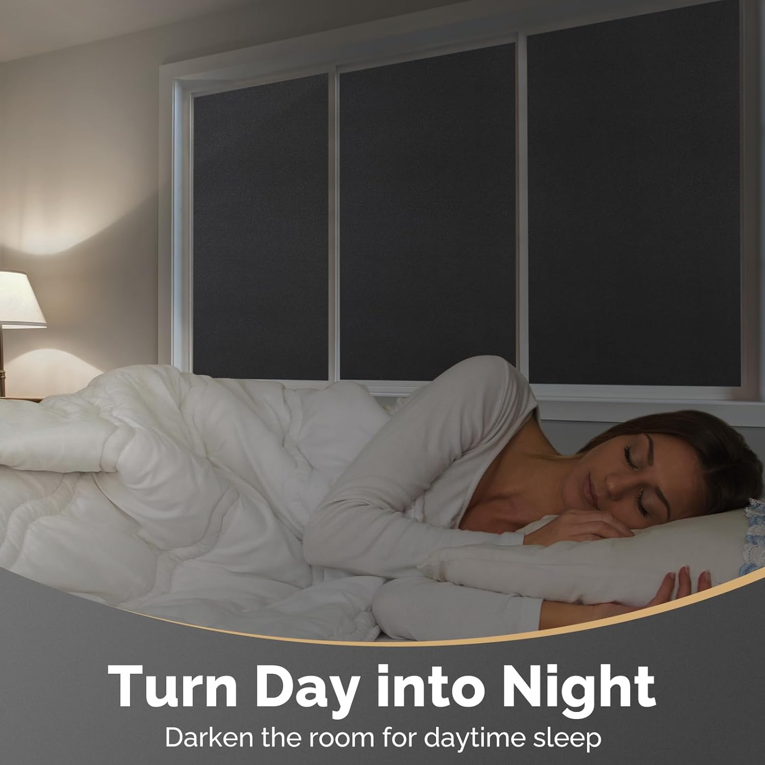 DOWELL Blackout Window Film, 100% Light Sun Blocking Static Cling Frosted Privacy Film for Glass, Heat Control Removable Window Tint, Room Darkening Cover for Day Sleep, Black, 17.5" x 78.7"