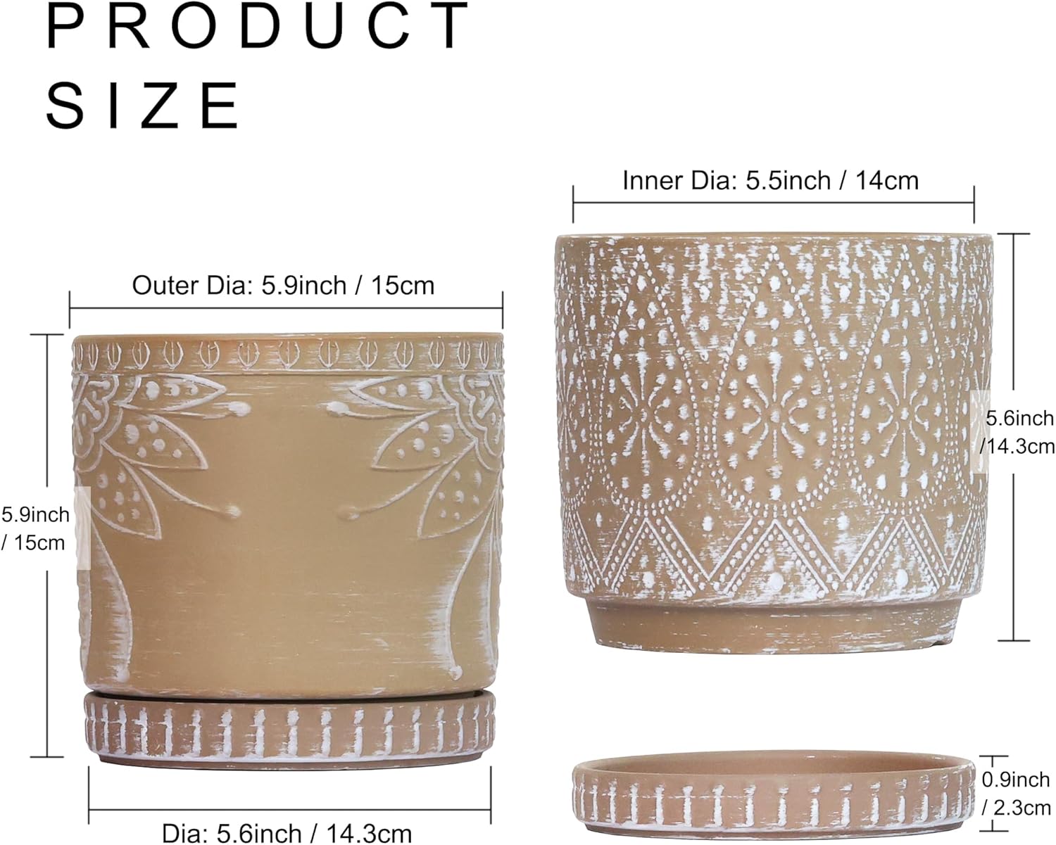 - Size & Package : 6 Inches set of 2. Package: contains 2 ceramic flower pots, 2 ceramic saucers and 2 mesh pads(NOT INCLUDE PLANTS)