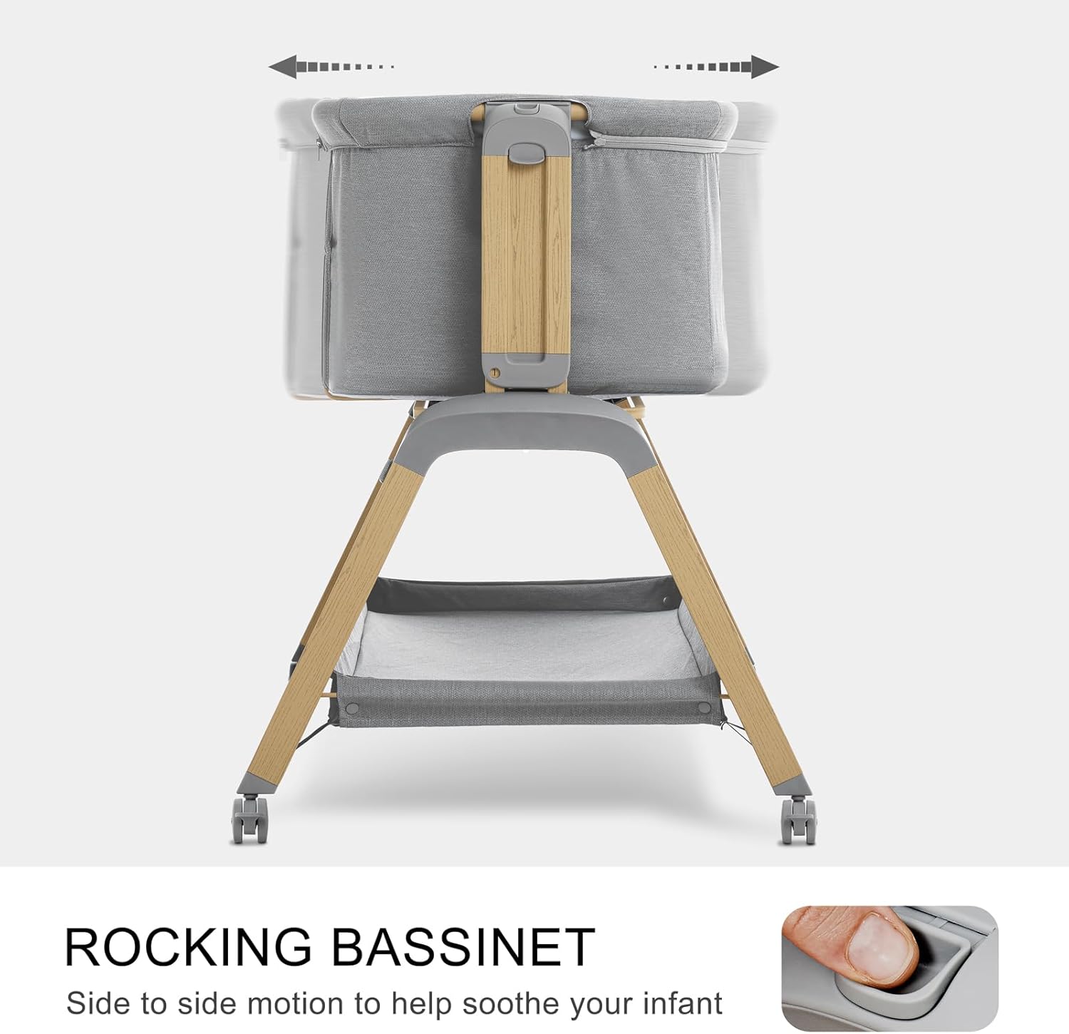 - Versatile: Jimglo 3 in 1 baby bassinet can be used as a standalone bassinet, bedside sleeper keep baby within arm’s reach, or rocking bassinet that provide side to side motion to help soothe your infant.