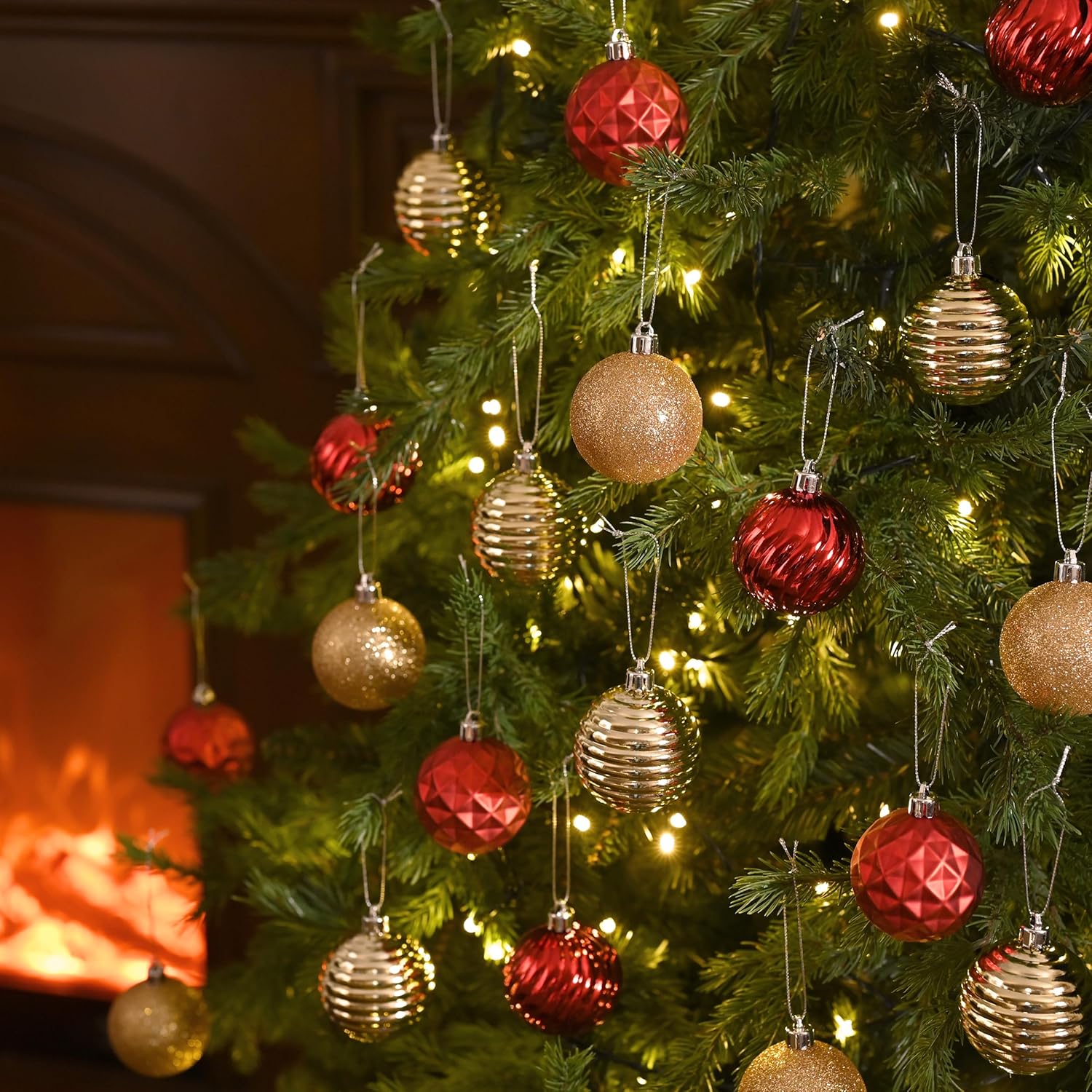 Valery Madelyn Christmas Ornaments Tree Decorations Set for Fall Halloween, 24ct Red Gold Shatterproof Ball Ornaments, 2.36" Hanging Ornament Bulk for Xmas Holiday Party Decor