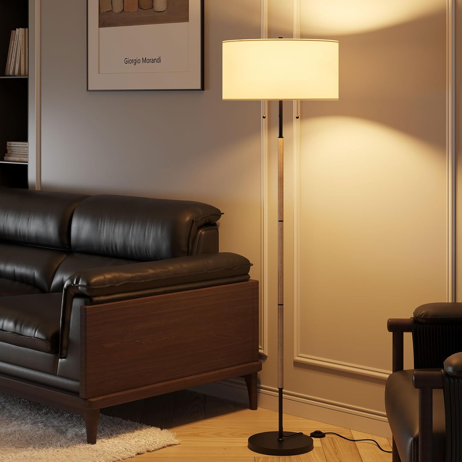 - ELEGANT E26 LAMP SOCKET DESIGN - This living room lamp has a built-in gold dual E26 Socket design with a drawstring zipper to turn the lamp on/off and change the lamp's color. Each drawstring zipper can control one bulb individually so that you can get bright light from one light. It also contains a foot switch (Note the foot switch is only used to turn the floor lamp on or off)