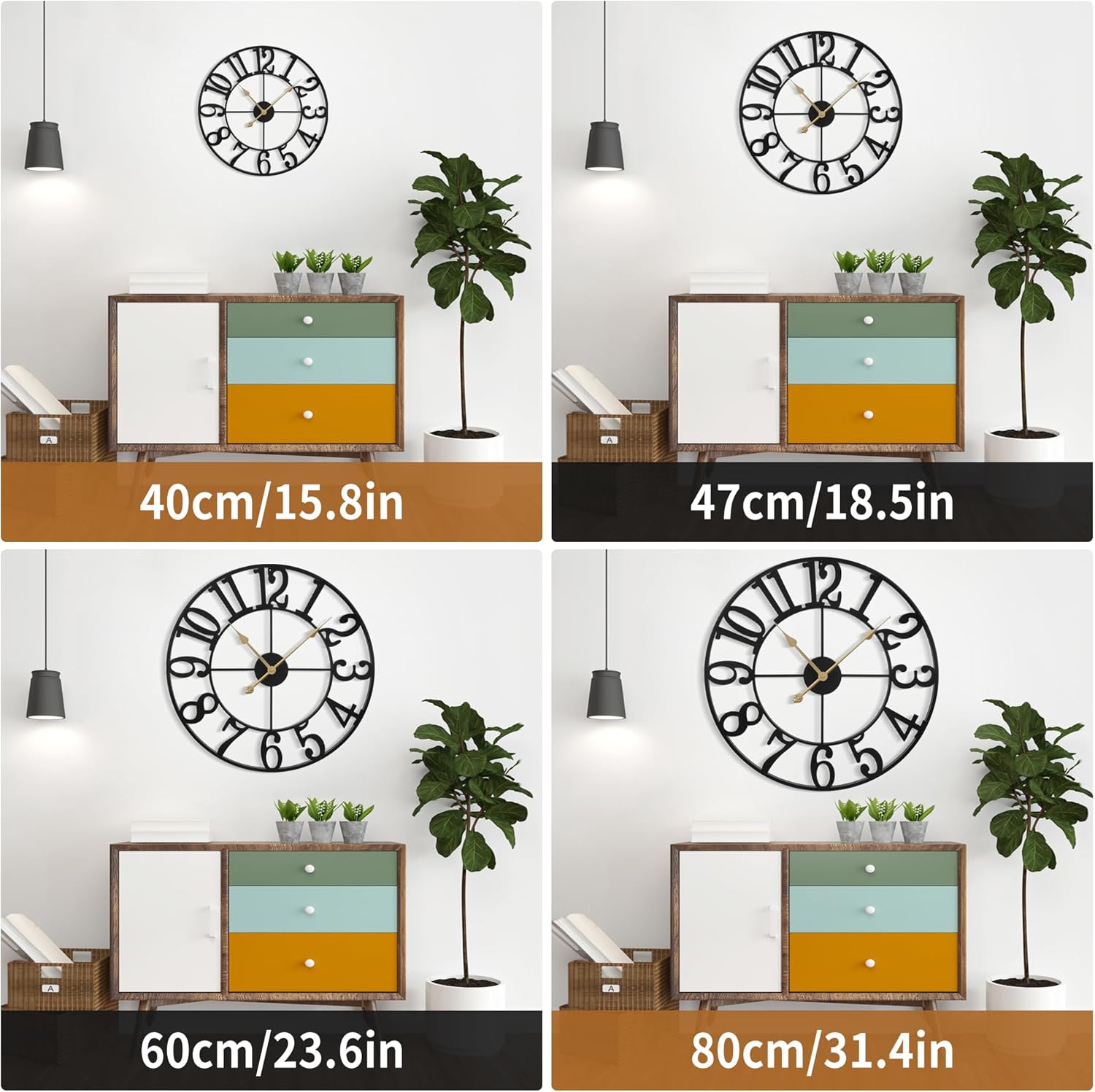 Large Wall Clock For Living Room Decor - 80cm/ 32 Inches Nearly Silent Non-Ticking Metal Wall Clocks Battery Operated, Vintage Decorative Modern Wall Clock For Bedroom, Office, Farmhouse Decor