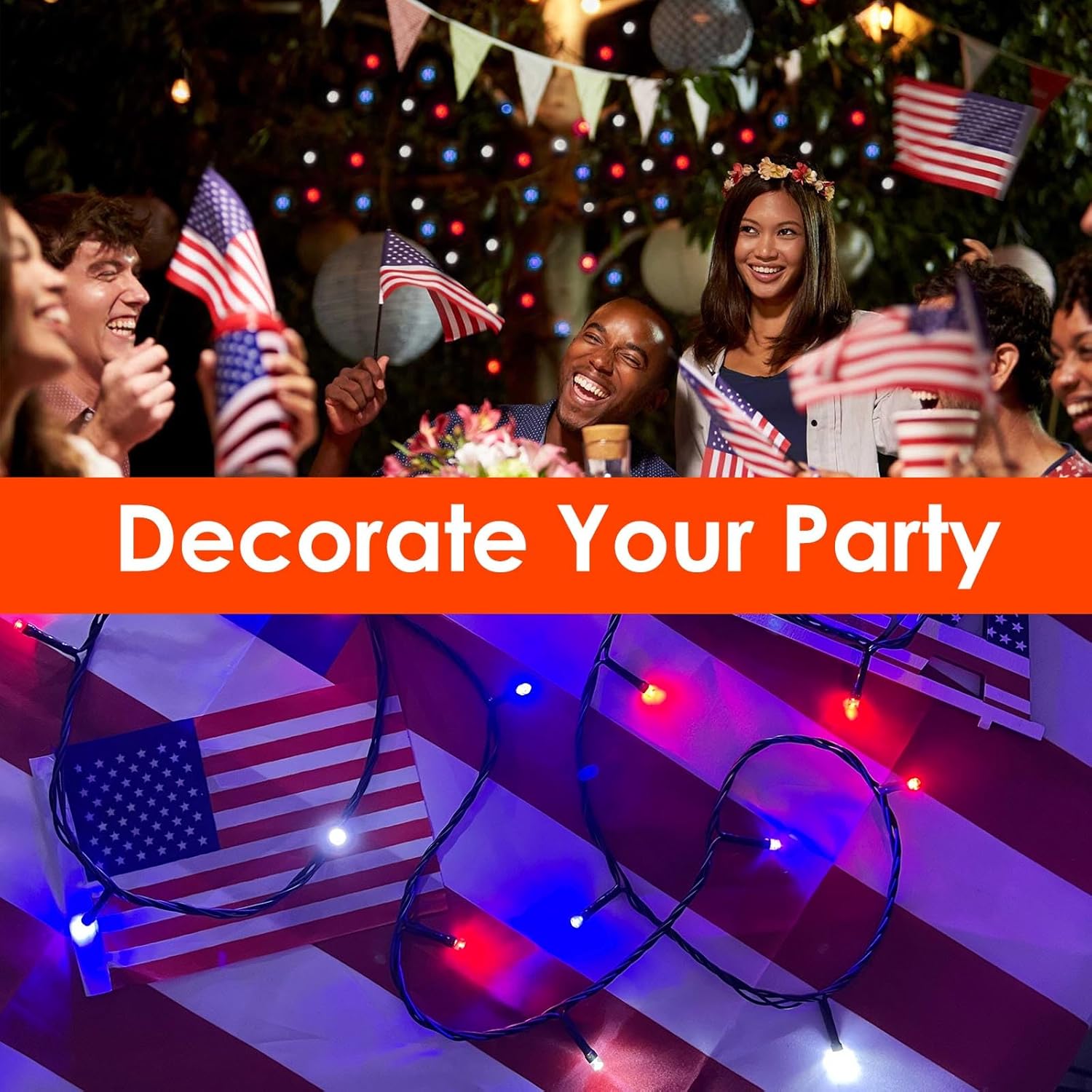 - Waterproof Outdoor patriotic decorations: Show your patriotic spirit with these unique patriotic decor string lights.Perfect for Memorial Day, Labor Day, Independence day, fourth of July decorations, Veterans Day,festival, holiday,party,ceremony,Patriotic party celebration supplies etc.
