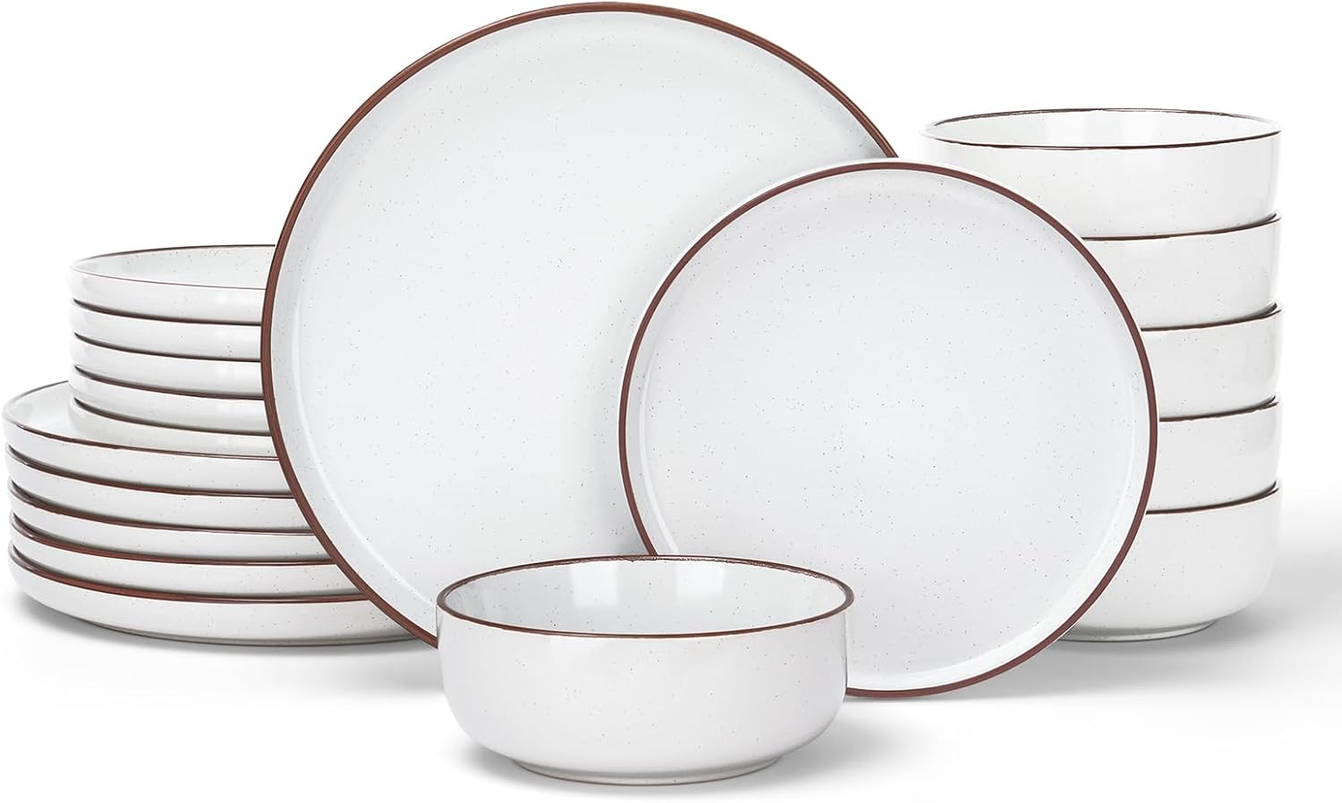 - 【AWESOME DESIGN】These rounded dishes are randomly scattered with speckled patterns of various sizes and shades, making each piece unique. The application of hand-crafted brown edges further adds an artistic touch to the series, creating a warm, elegant and romantic family dinner party.