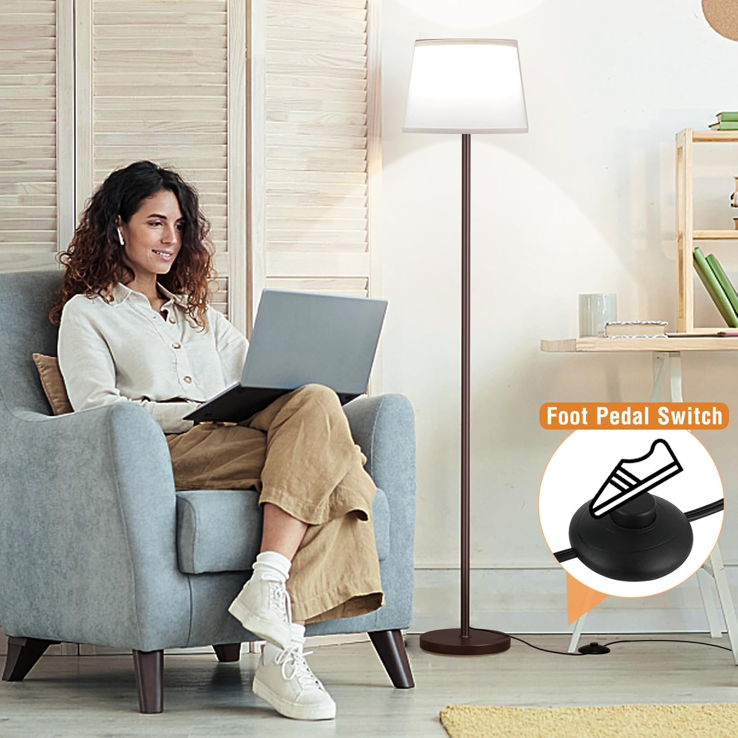 - 【Corner Floor Lamp With Remote Control & Foot Switch】- Tall lamps use a combination of remote control and foot switch to ensure the convenience of daily life. The 9W light bulb is paired with the remote control, and then you just need to choose the appropriate color temperature and brightness for your needs. (Please set the foot switch to ON in advance.) Suitable for placing this minimalist style standing lamp in a corner or beside the bed.