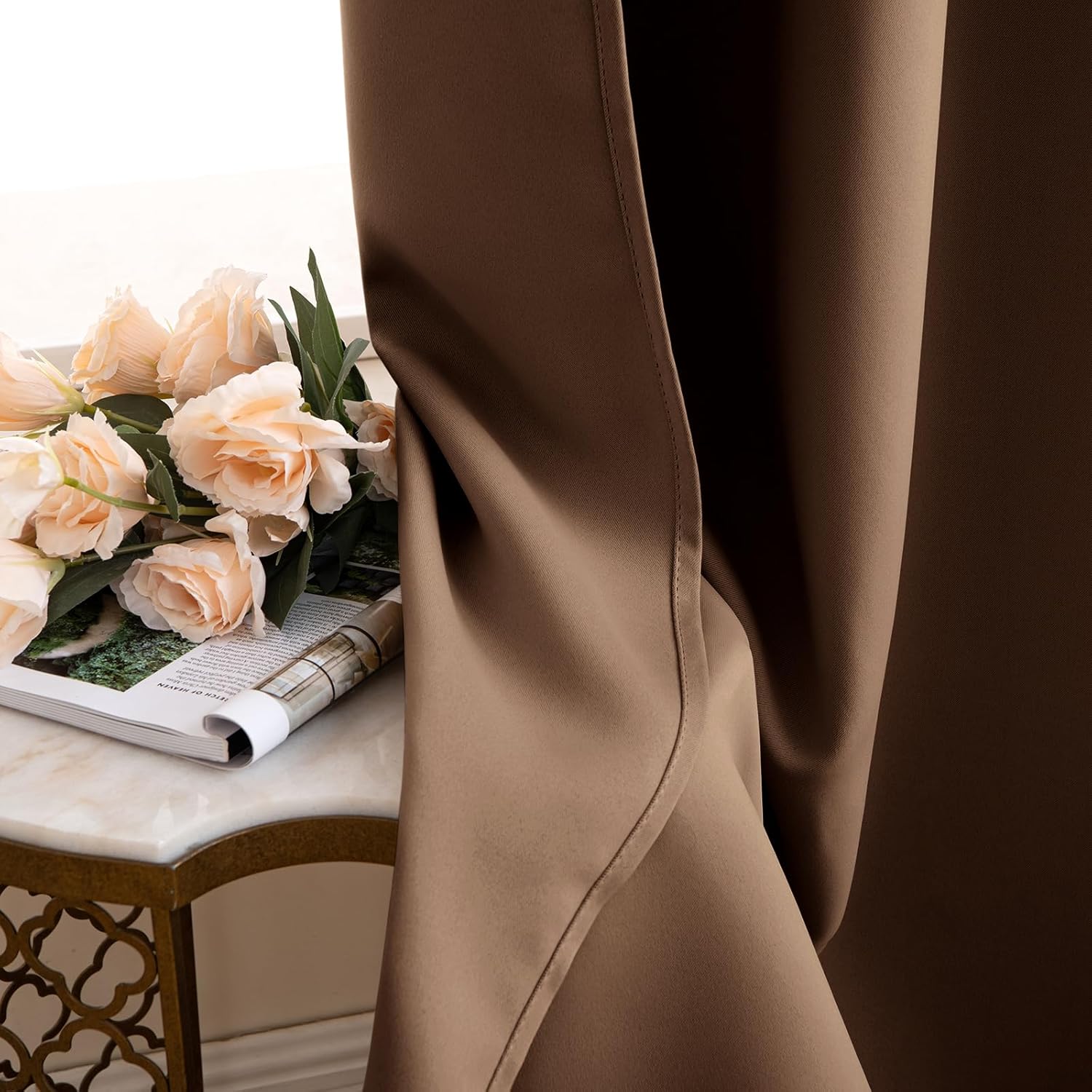 MIULEE Back Tab Blackout Curtains 90 Inch Long 2 Panels Set for Living Room Bedroom, Rod Pocket/Pinch Pleated Thermal Insulated Room Darkening Light Blocking Curtain, 52 x 90 Inch, Cappuccino Brown