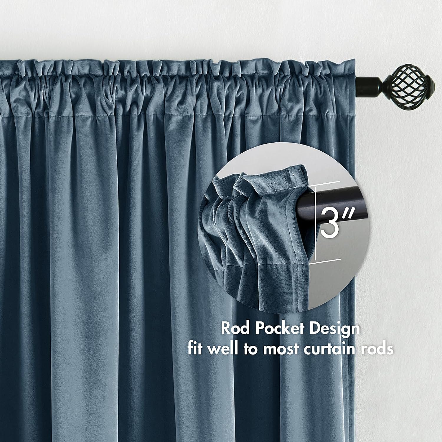 MIULEE Dark Slate Velvet Curtains Thermal Insulated Blackout Curtain Drapes for Bedroom Living Room Darkening 96 Inches Long Curtains Panels Rod Pocket Set of 2