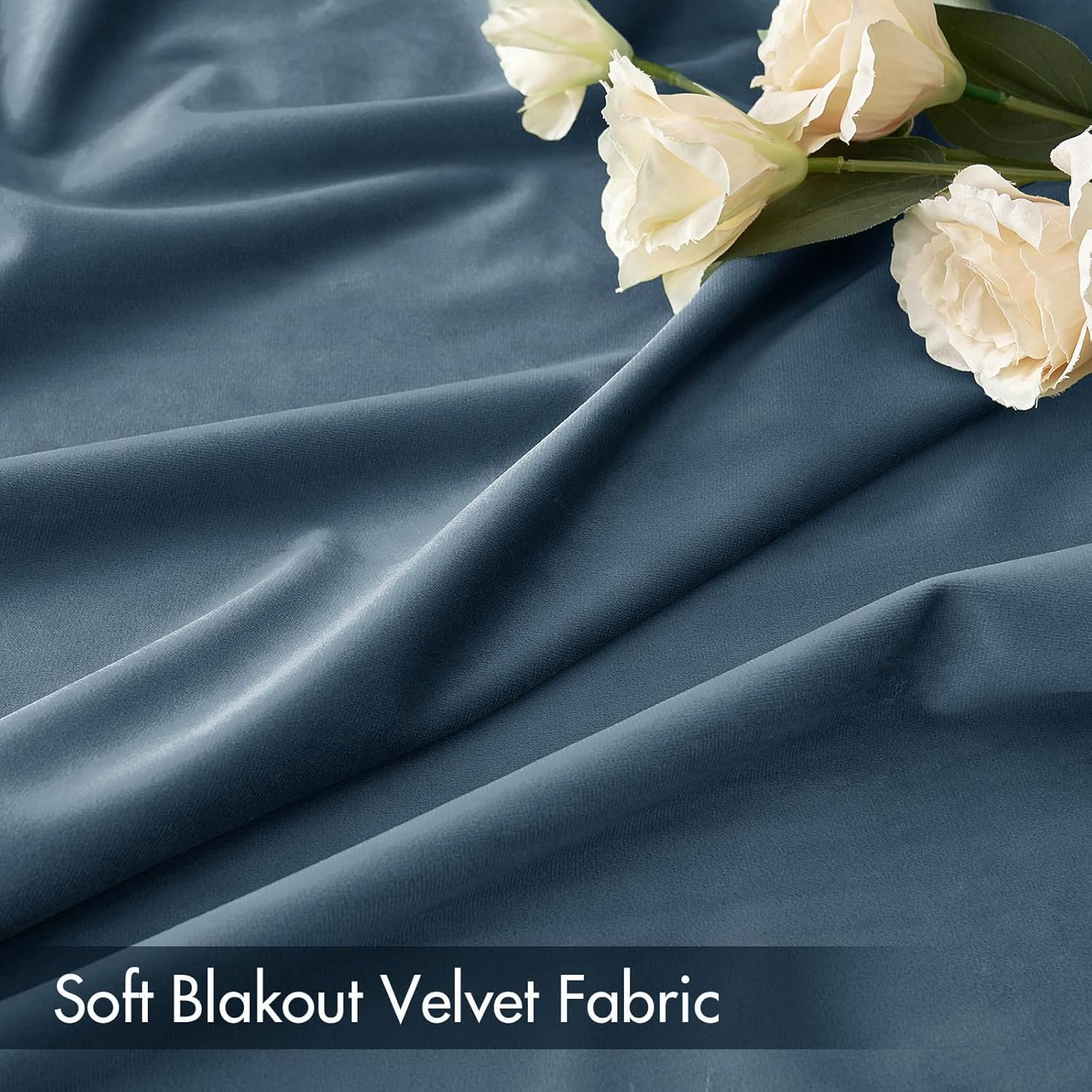 MIULEE Dark Slate Velvet Curtains Thermal Insulated Blackout Curtain Drapes for Bedroom Living Room Darkening 84 Inches Long Curtains Panels Rod Pocket Set of 2