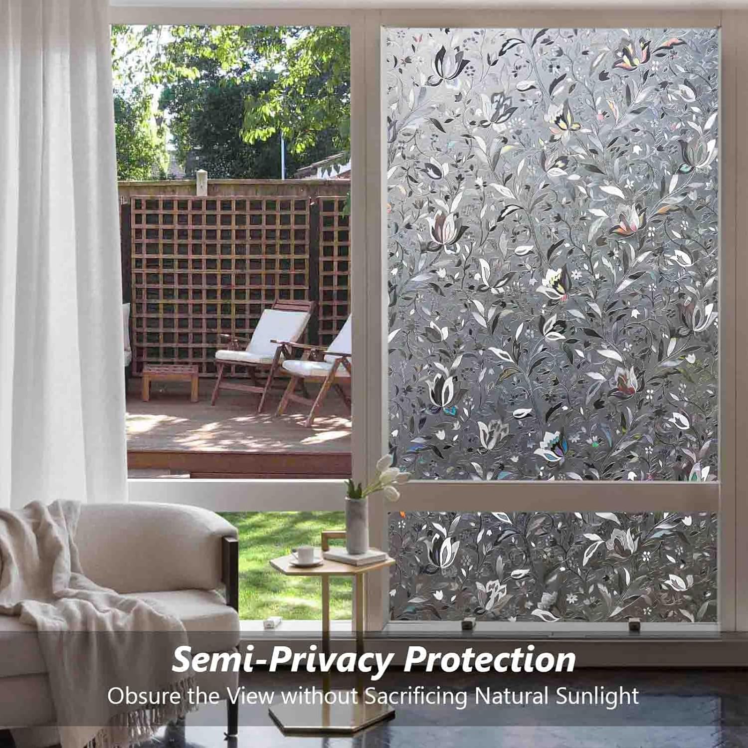 - UNIQUE TULIP PATTERN: Special laser tulip patterns of this window film creates a visual effect like rainbow by strong light and brings unique decoration on your glass. It is an excellent way to add colors to your room without the need for traditional stained glass windows