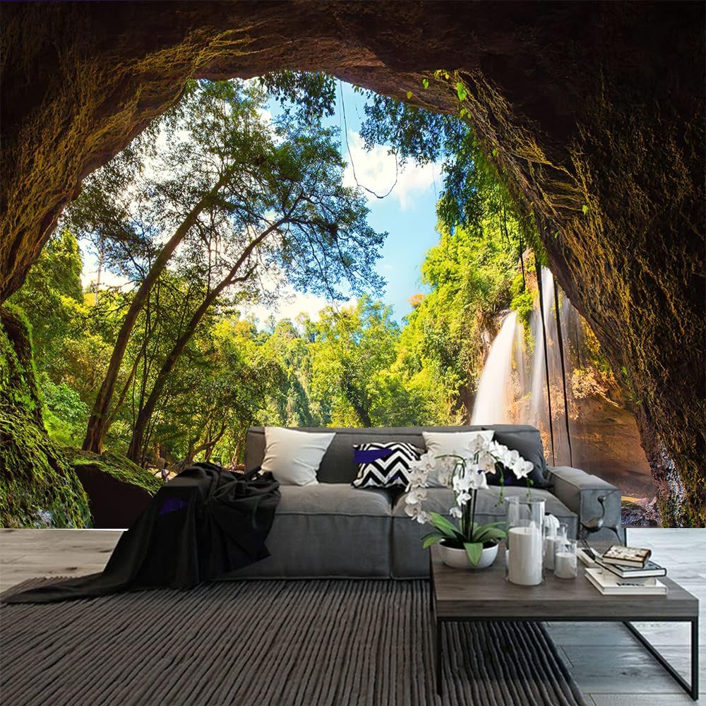 FENDROM Green Misty Forest Tapestry Wall Hanging Nature Mountain Cave Landscape Tapestry Waterfall River Tapestries for Bedroom Living Room Dorm Decor