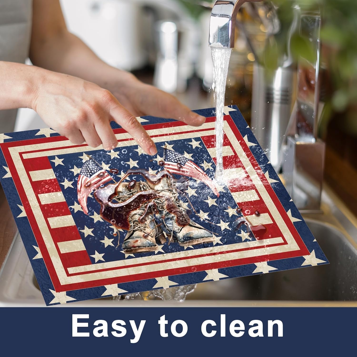 - Premium material: Retro 4th of July patriotic placemats are made of high-quality plastic material, waterproof, heat-resistant and odorless, not easy to fade and deform, no wrinkles, reusable, which helps you use them for a long time and brings you a pleasant meal experience.