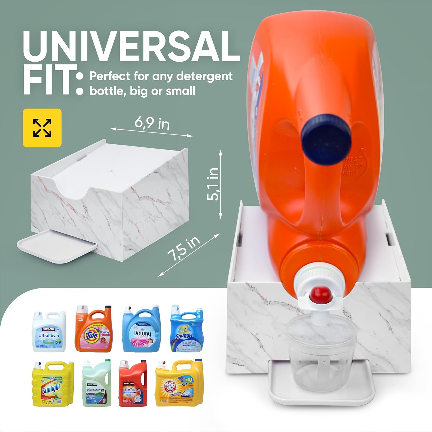 Skywin Laundry Room Organizer and Drip Tray - Soap Cup Storage for Liquid Detergent Containers (White Marble)