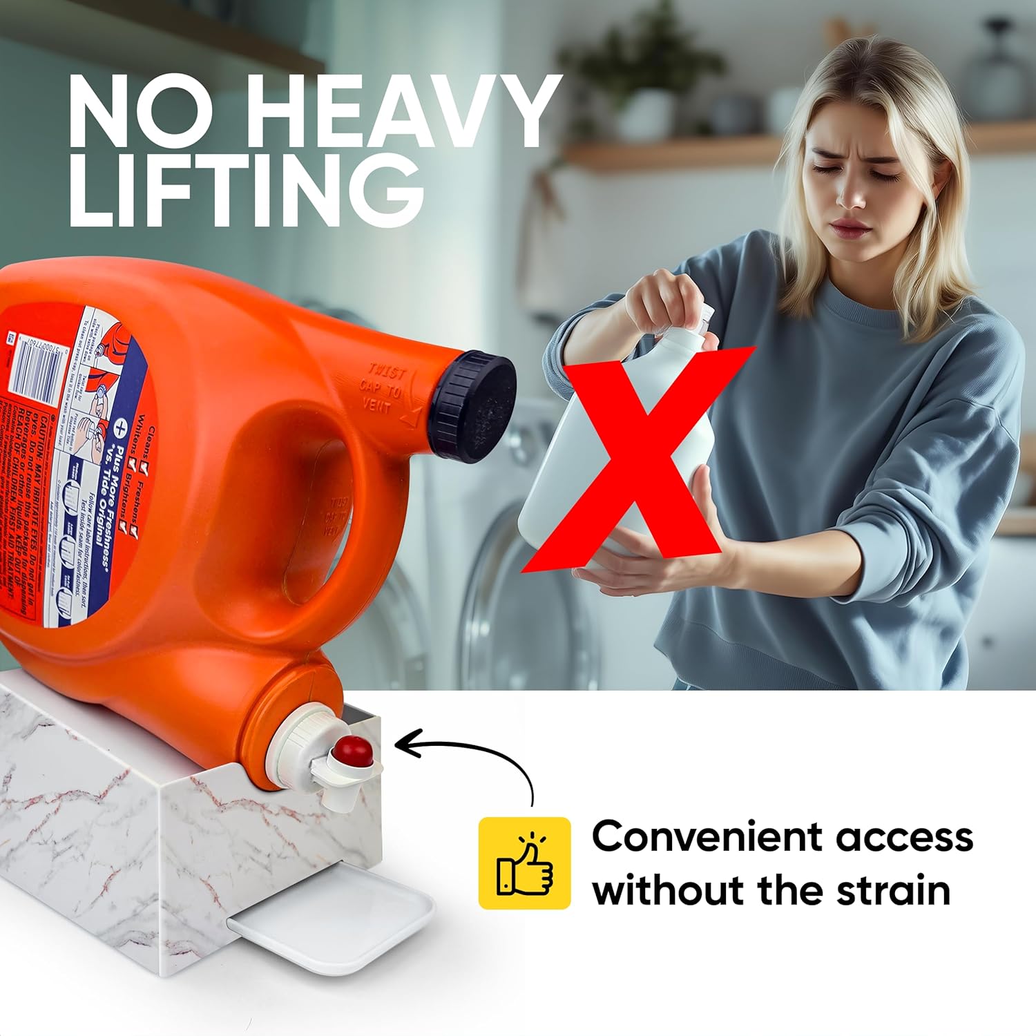 - Patents Pending Angled laundry detergent drip catcher, no need to tilt or lift the bottle. Downward slope makes soap pour out easily
