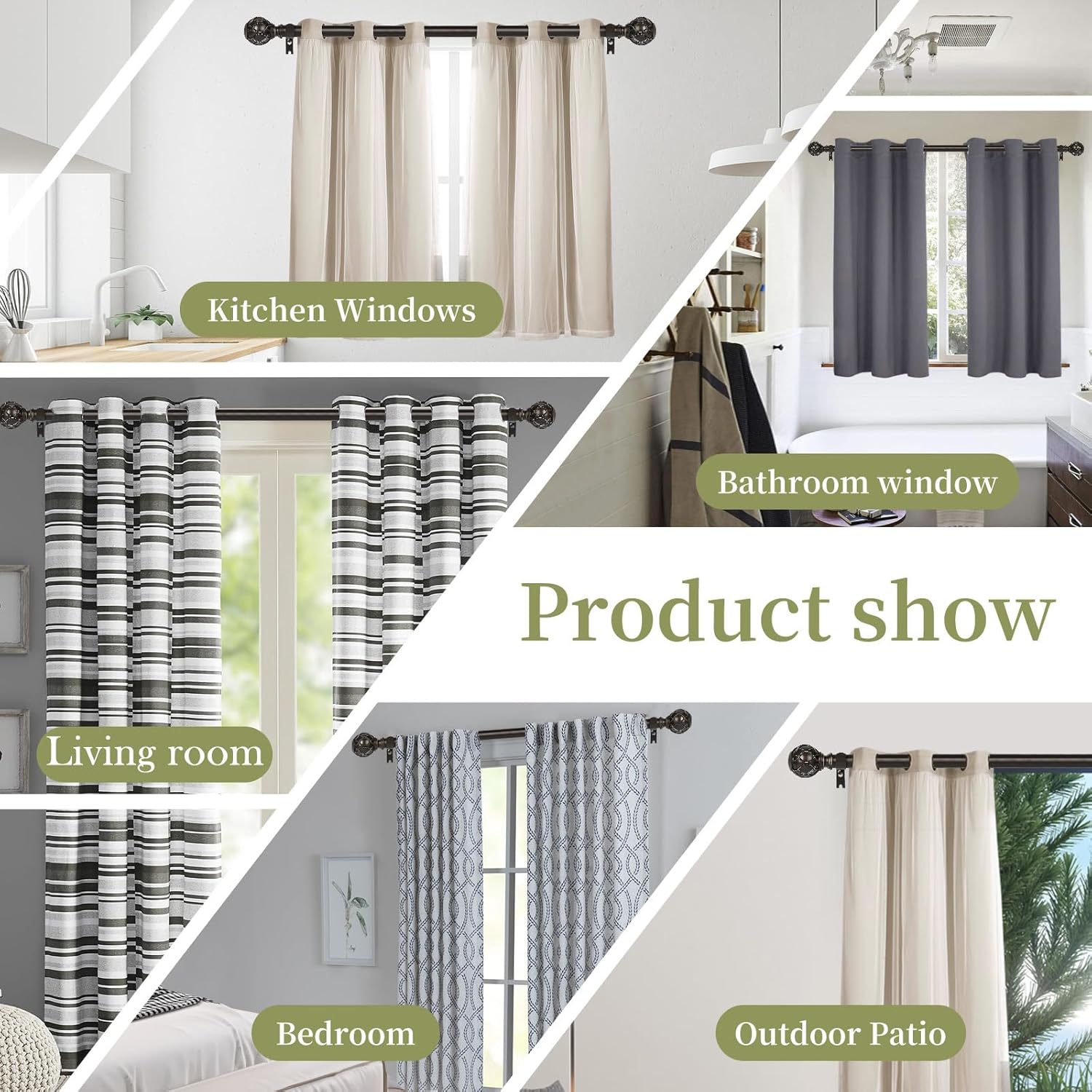 - More Application Scenarios for Curtain Rods:Decorative drapery rods are suitable for any room in your home and match a variety of house styles and window treatments,bronze curtain rods for bedrooms,patios,living rooms, dining rooms and kitchens.Telescoping curtain rod not only provides visual balance,but also adds a modern touch to your home decoration, enhancing the beauty and artistry of the room.