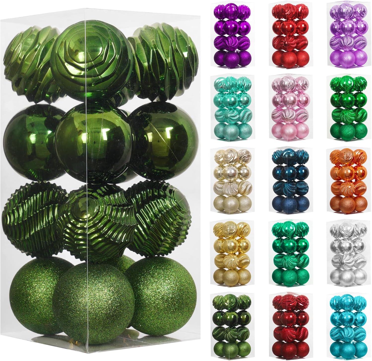 XmasExp 16ct Christmas Ball Ornaments Shatterproof Christmas Ornaments Set Decorations for Xmas Tree Balls 80mm/3.15" (Dark Green)
