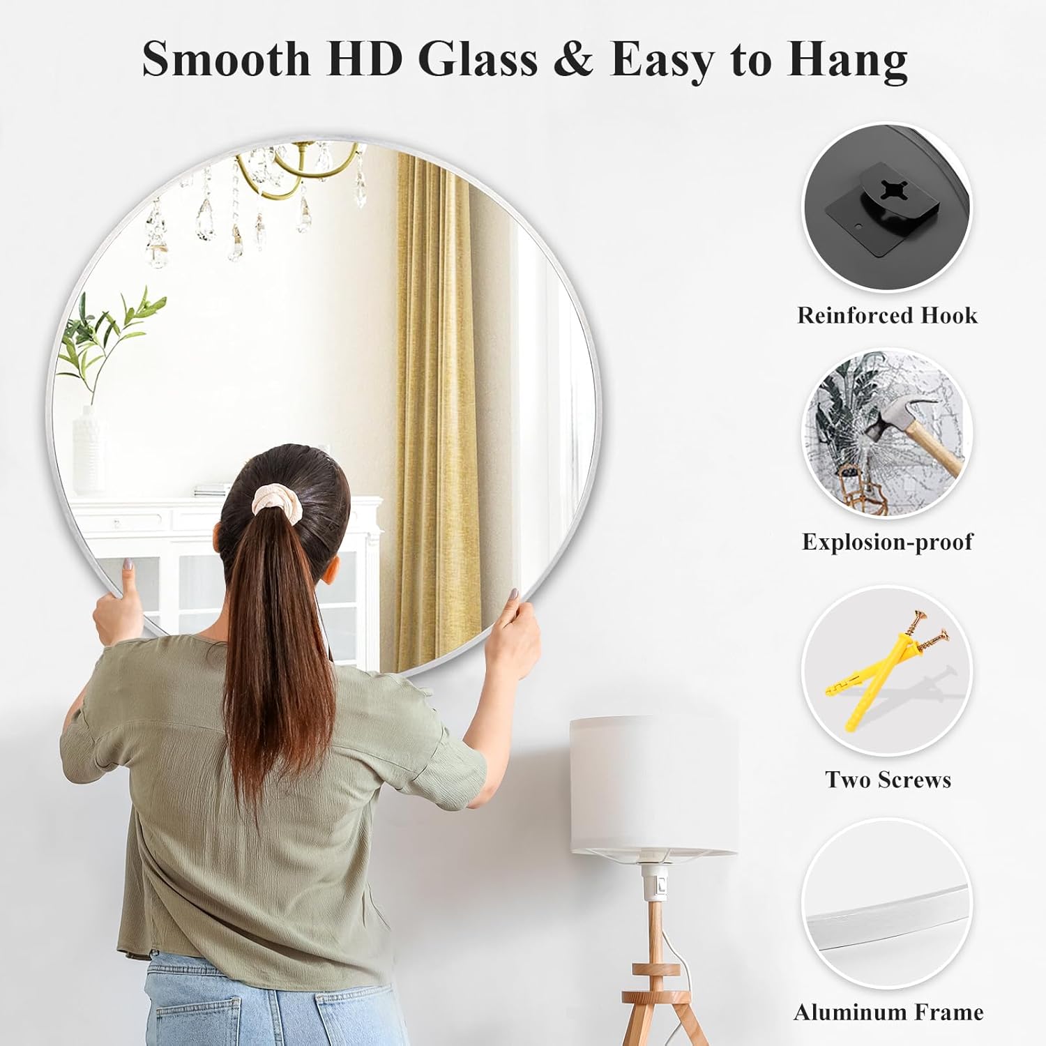 - Install is a Breeze - With the easy-followed instruction and complete accessories, you can install the modern mirror in a short time. What’s more, this circle mirror adopts explosion-proof glass, safe, waterproof and moisture-proof, that can use for long time and will not hurt your children