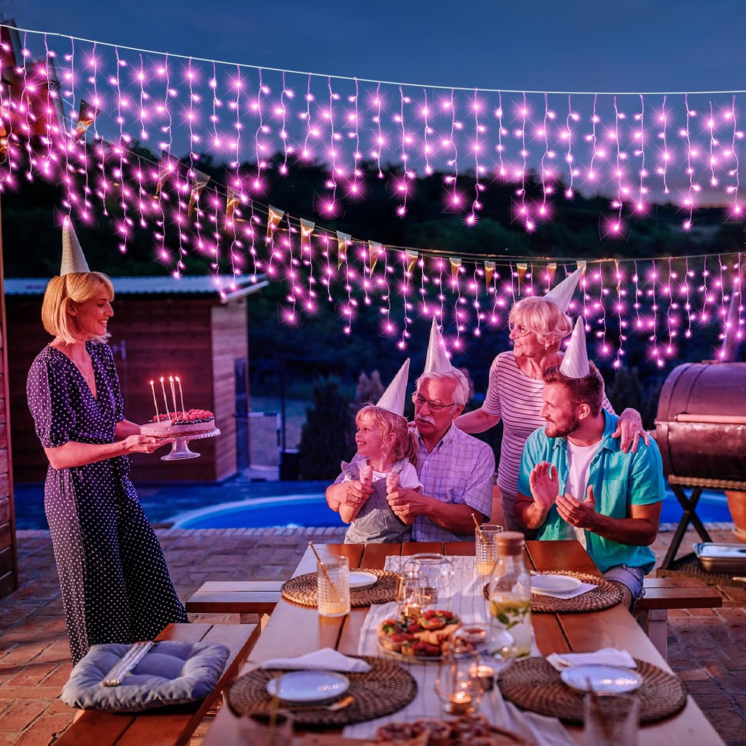 - ăEasy and Safe to UseăFirst unfasten the string lights, hold the straight string and let the drops fall naturally, then hanging the curtain string fairy lights anywhere you want to decorate, such as eaves, walls, yards, trees, fences, decks, railings, porches,balcony etc. Children and pets are safe to touch the hanging Christmas lights.And these Christmas icicle lights will not overheat even work for long time.