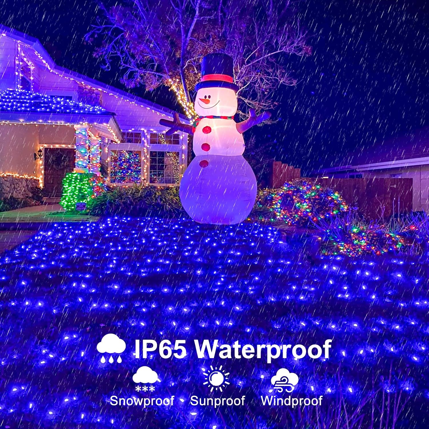 2 Pack Christmas Lights Outdoor, Total 200FT 600LED Christmas String Lights with 8 Modes Waterproof, Green Wire Twinkle Tree Lights for Indoor Patio Xmas Decor, 1 Pack Blue & 1 Pack White